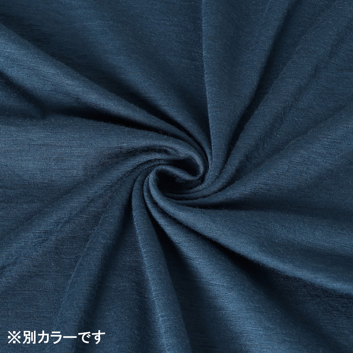 100%メリノウールを使った150g/m2という薄手のジャージー生地は、シーズンや着用シーンなどの汎用性が高い素材。暑くても寒くても衣服内の調温調湿に優れ、快適な着心地になるメリノウールの特性を備えています。