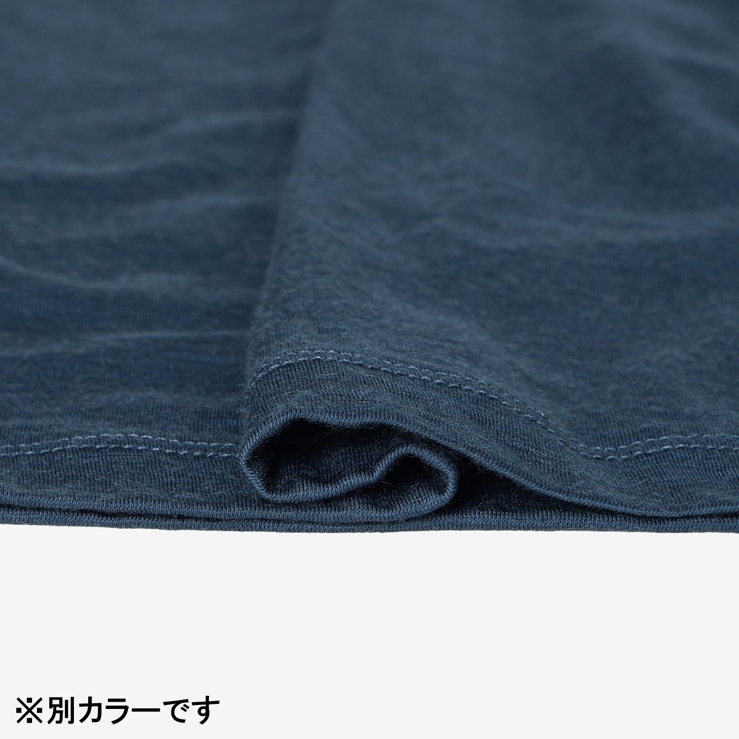100%メリノウールを使った150g/m2という薄手のジャージー生地は、シーズンや着用シーンなどの汎用性が高い素材。暑くても寒くても衣服内の調温調湿に優れ、快適な着心地になるメリノウールの特性を備えています。