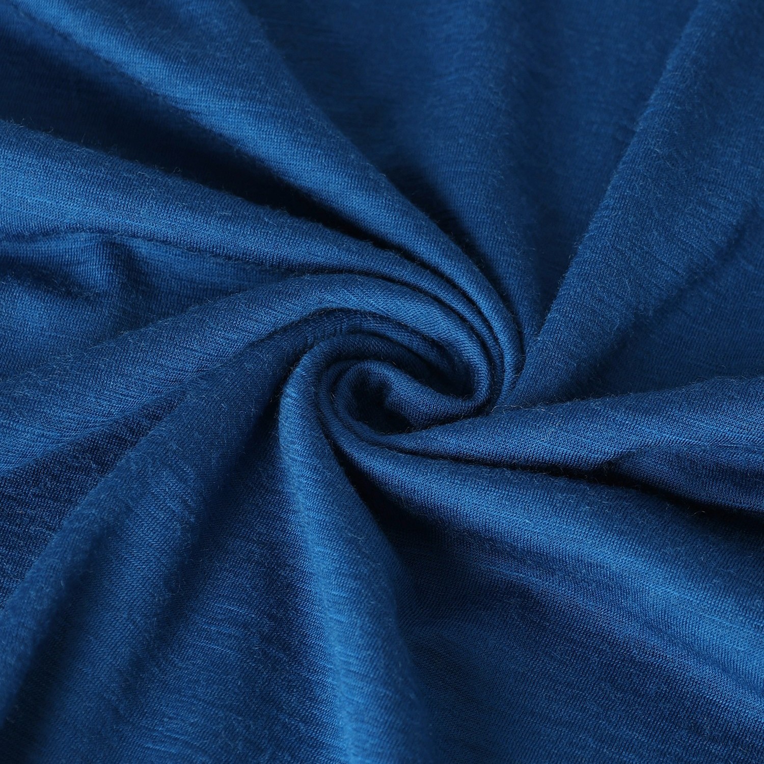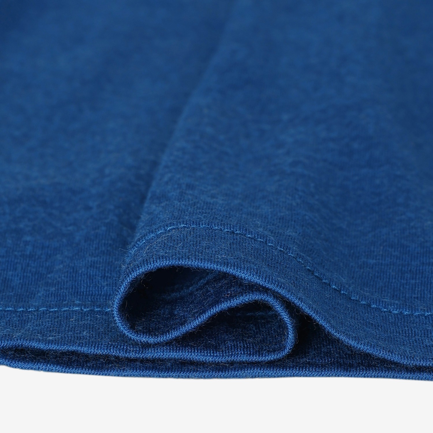 メリノウールだけで仕上げた150g/m2という薄手のジャージー生地は、シーズンや着用シーンなどの汎用性が高い素材。暑くても寒くても衣服内の心地よい暖かさや優れた調湿性が保たれるため、メリノウールの特性による快適な着心地のよさを肌から直に感じられます。