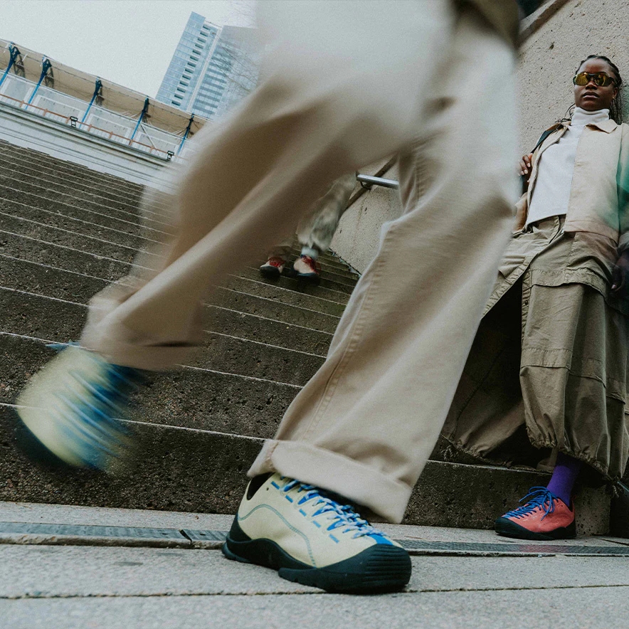 クライミングシューズとコンフォートシューズをハイブリッドしたアウトドアスニーカー。