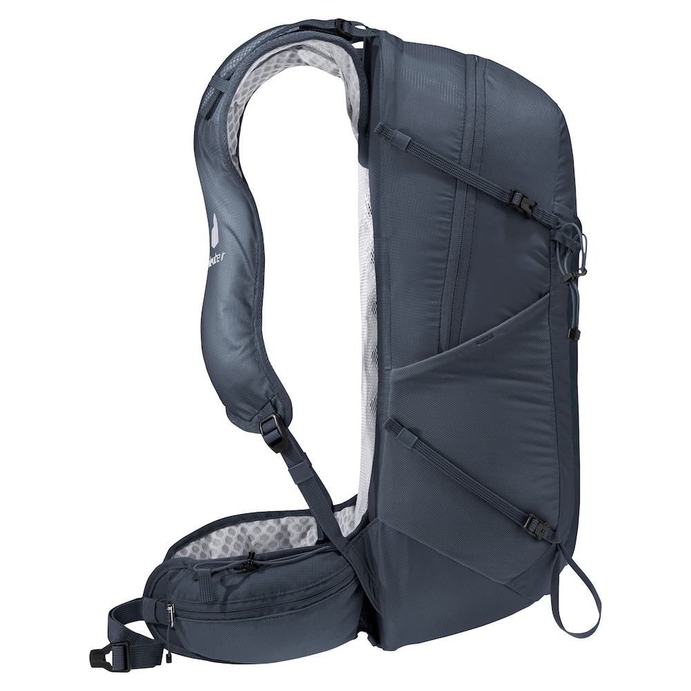 - 背負ったときの荷重がバランスよくしっかりと腰へ伝わり、背面の通気性を保ちながらも高いフィット感を得られる新たな背面パネルを用いた軽量パックです。ファスナーポケットを設けたショルダーストラップには柔らかく、軽量で通気性に優れたエアメッシュを採用しています。装備を背負い歩いたときに快適さを得られるか否かは素材の軽さだけではないと考えるドイターの哲学が具現化したモデルです。