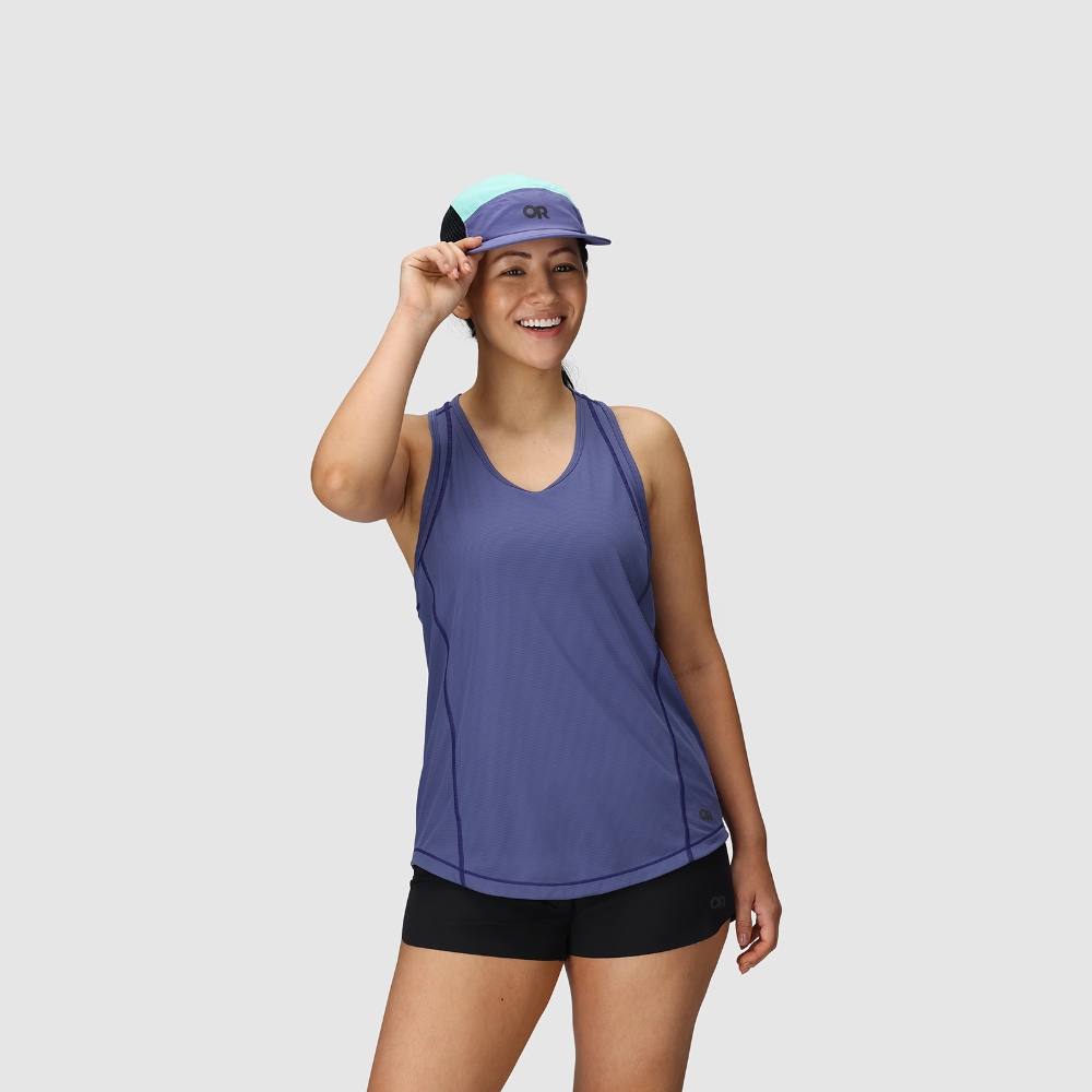 ベストセラーのスイフトキャップにインスパイアされたデザインは、空気の流れを促進するために頭部がメッシュ層になっており、スイフトキャップよりも穴の大きいメッシュ素材を使用しているため、究極の通気性を提供します。芯のない柔らかい素材を使用したツバは、小さくまとめられるためポケットなどにしまい込むことも可能です。