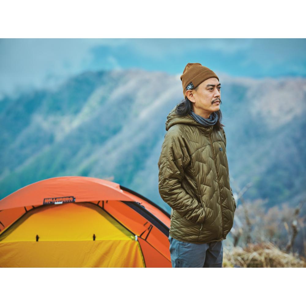 ダウンとシンセティックインサレーションの両方のメリットを享受できる、超軽量でコンパクトなパーカーです。