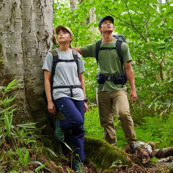 濡らしても速く乾く、繰り返しの着用でも型くずれしにくい、などアウトドアウエアとしての機能性も充分に備えています。