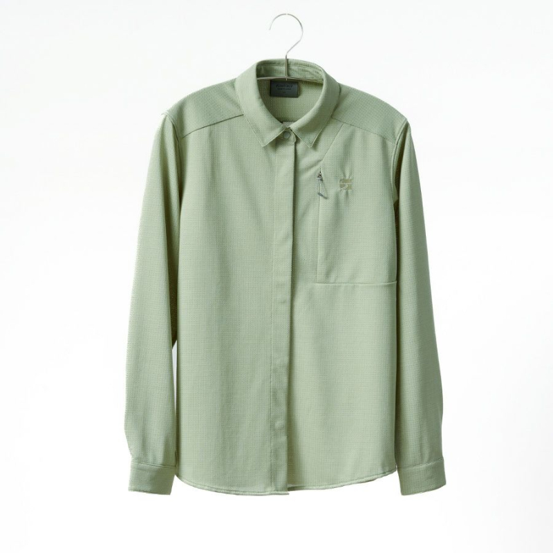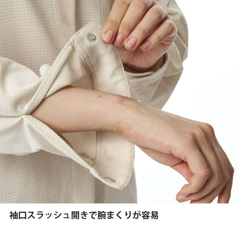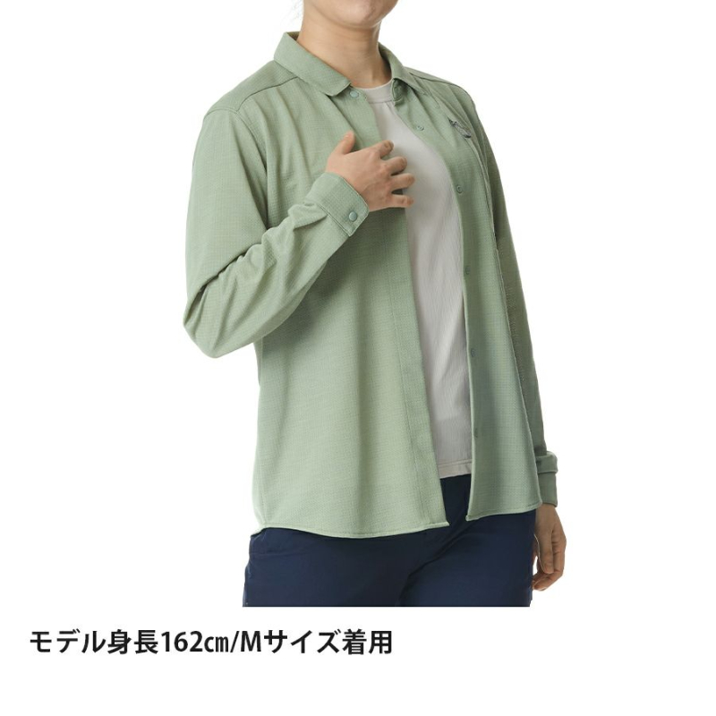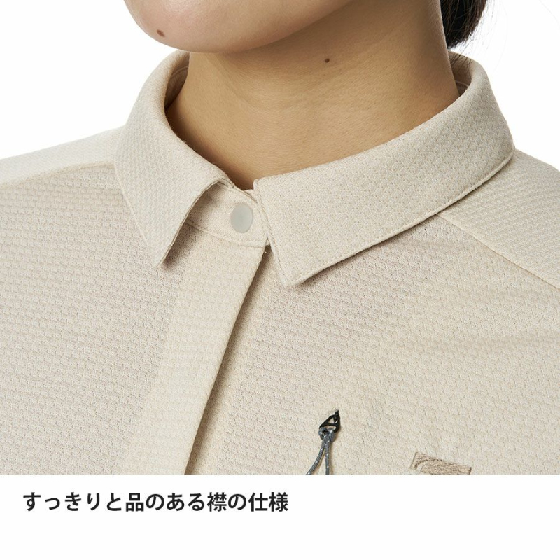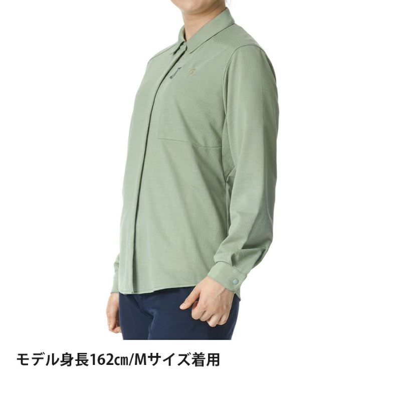 また、腕まくりしやすい袖口、片手で操作しやすい軽量スナップボタン、ファスナー付で収納力に優れたポケットなどアウトドアでの使いやすさと軽さも追求しています。高機能に加えてシャツとしての仕立ての美しさも追求したシンプルデザイン。ベースレイヤー(Tシャツ)の上から羽織ったり、ドライレイヤー(R)の上に直接レイヤリングしたり、シーンや気候に合わせて活用いただけます。