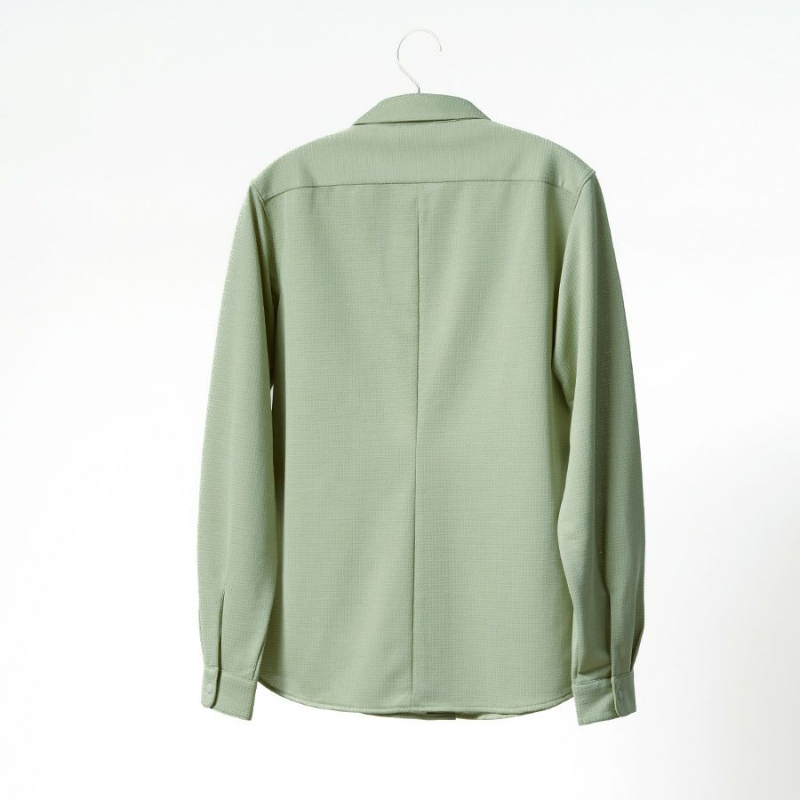 シャツとして一般的な布帛を使わず、ニット地にすることで高い通気性と動きやすさを実現しました。ニット素材には独自素材のラミースピン(R)糸と半永久吸汗を可能にする特殊ポリエステルをハイブリッドし、ベースレイヤー並みの優れた吸汗速乾性も備えます。
