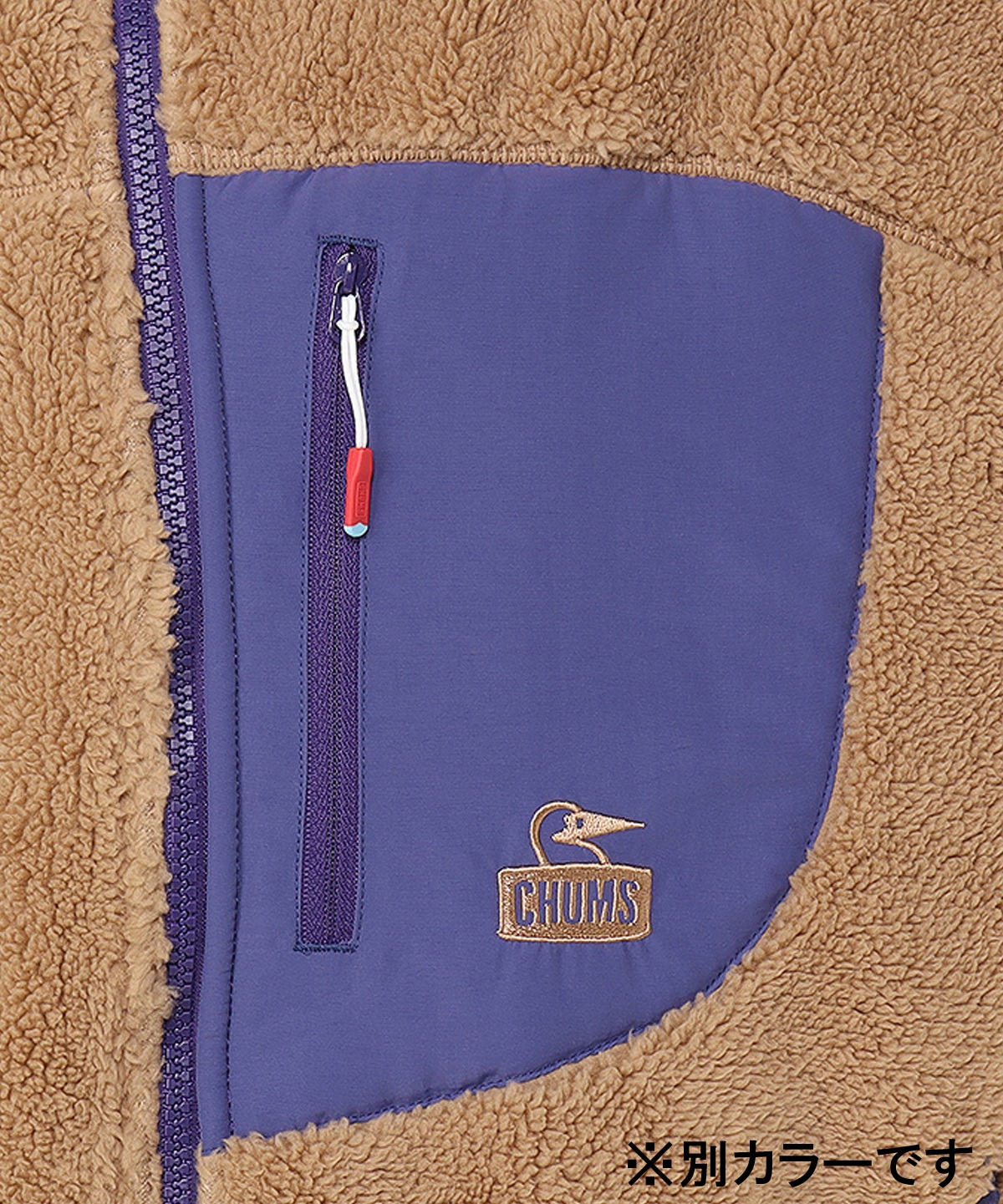 CHUMSの冬の定番、ボンディングフリースを使用したスタンドカラージャケット。ブービーバードの羽やくちばしをモチーフにした曲線的なカッティングで、CHUMSらしいあそびゴコロを表現しました。