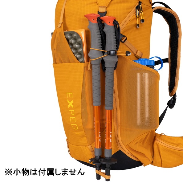 エアフローシステムは柔軟性があり、着用者の背中が自然に動くようになっています30Lと45Lのモデルには、より重い荷物を運ぶ想定で軽量スチールフレームが入っていて、背面長の長さが調節可能になっている。
