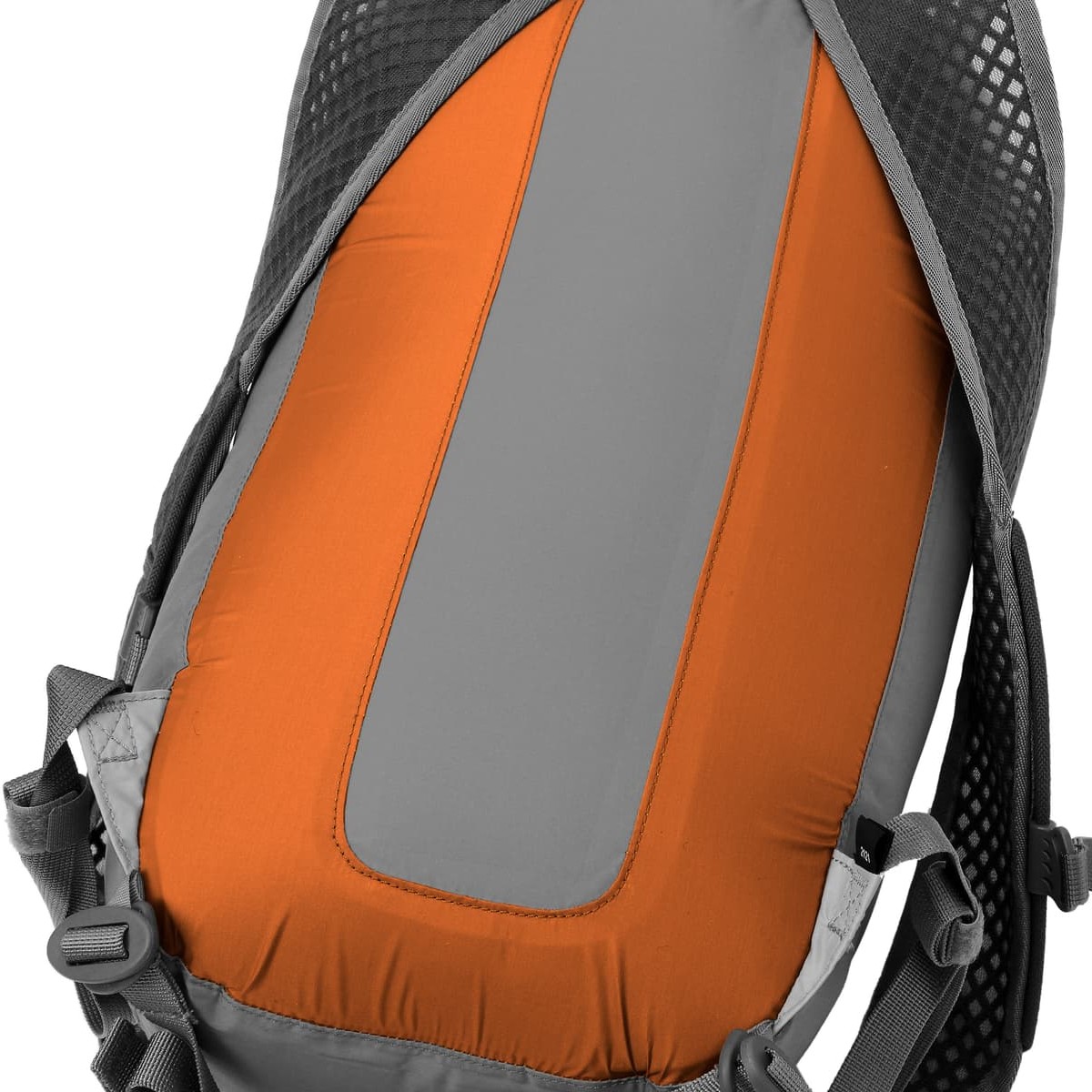 幅広のメッシュショルダーストラップは軽量で通気性がよく、濡れてもすぐに乾きます。背面にはU型EVAフォームが入っているため、パッカブル式リュックのような不安定な背負い心地ではなく、長時間荷物を背負える安定した作りです。