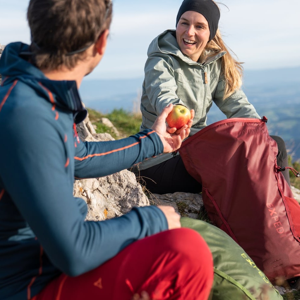 PFCフリーのリサイクル生地は防水性だけでなく耐久性にも優れています。畳みやすい柔らかなメッシュバックと、取り外し可能なヒップストラップにより、コンパクトに持ち運びができます。