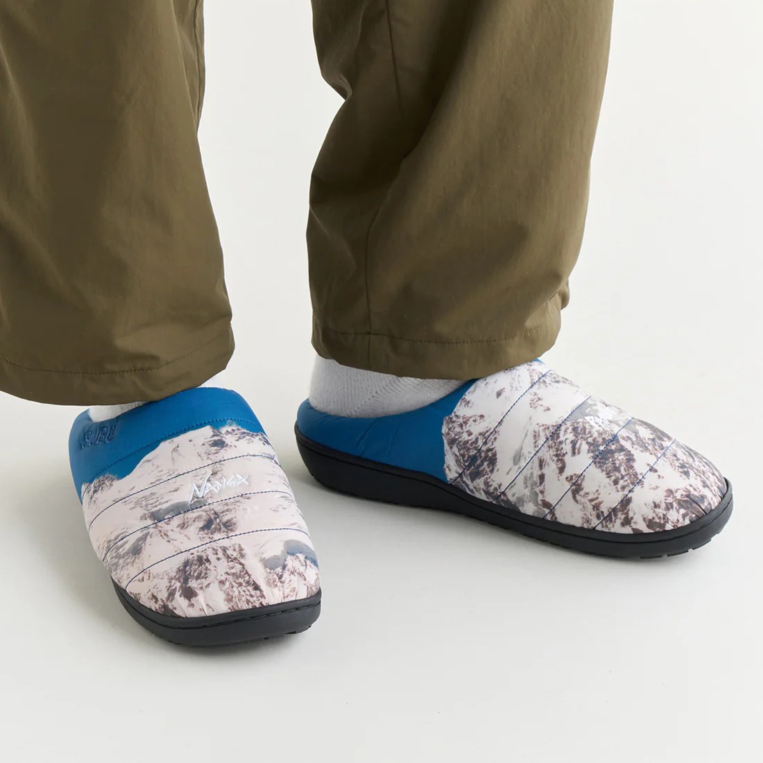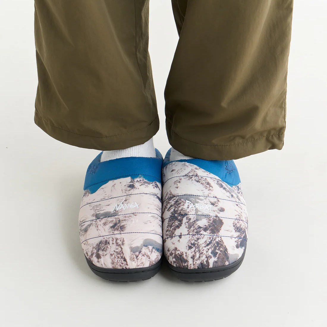 ナンガパルバット ウィンター サンダル は、NANGAの冬の定番となりつつあるSUBUとのコラボレーションモデルに、25FWシーズンは特別に写真家・石川直樹氏が撮り下ろした〈NANGA PARBAT〉の写真をプリントした限定仕様。