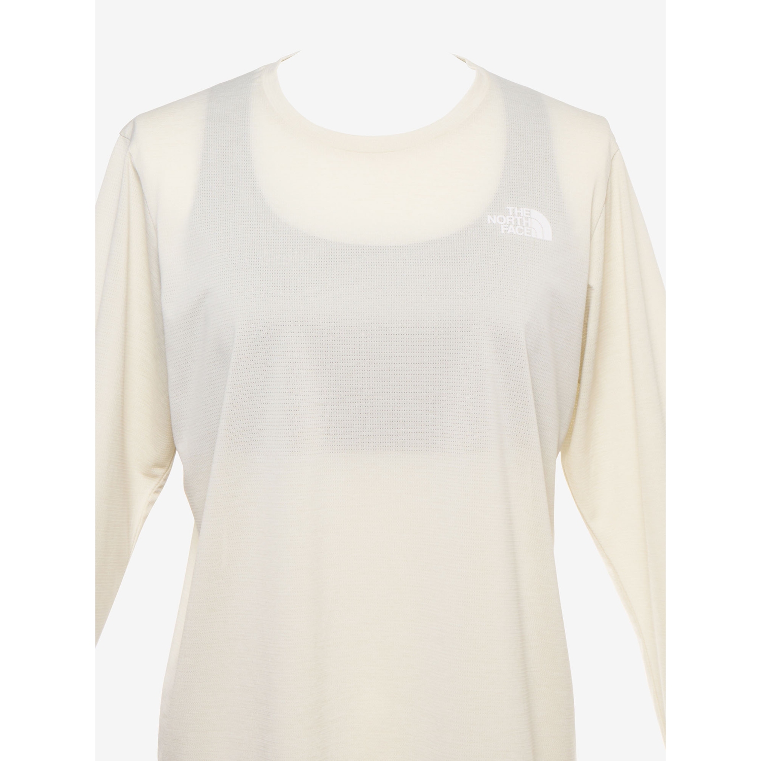 素材には、高い吸汗速乾性をもったTHE NORTH FACE独自の「FLASHDRY」を採用。肌面にはっ水糸を配置して、かいた汗を素早く表面に移行させ、肌面をドライに保ちます。肌面に若干の凹凸をもたせた立体的な編み地組織と相まって、肌へのまとわりつきも軽減。