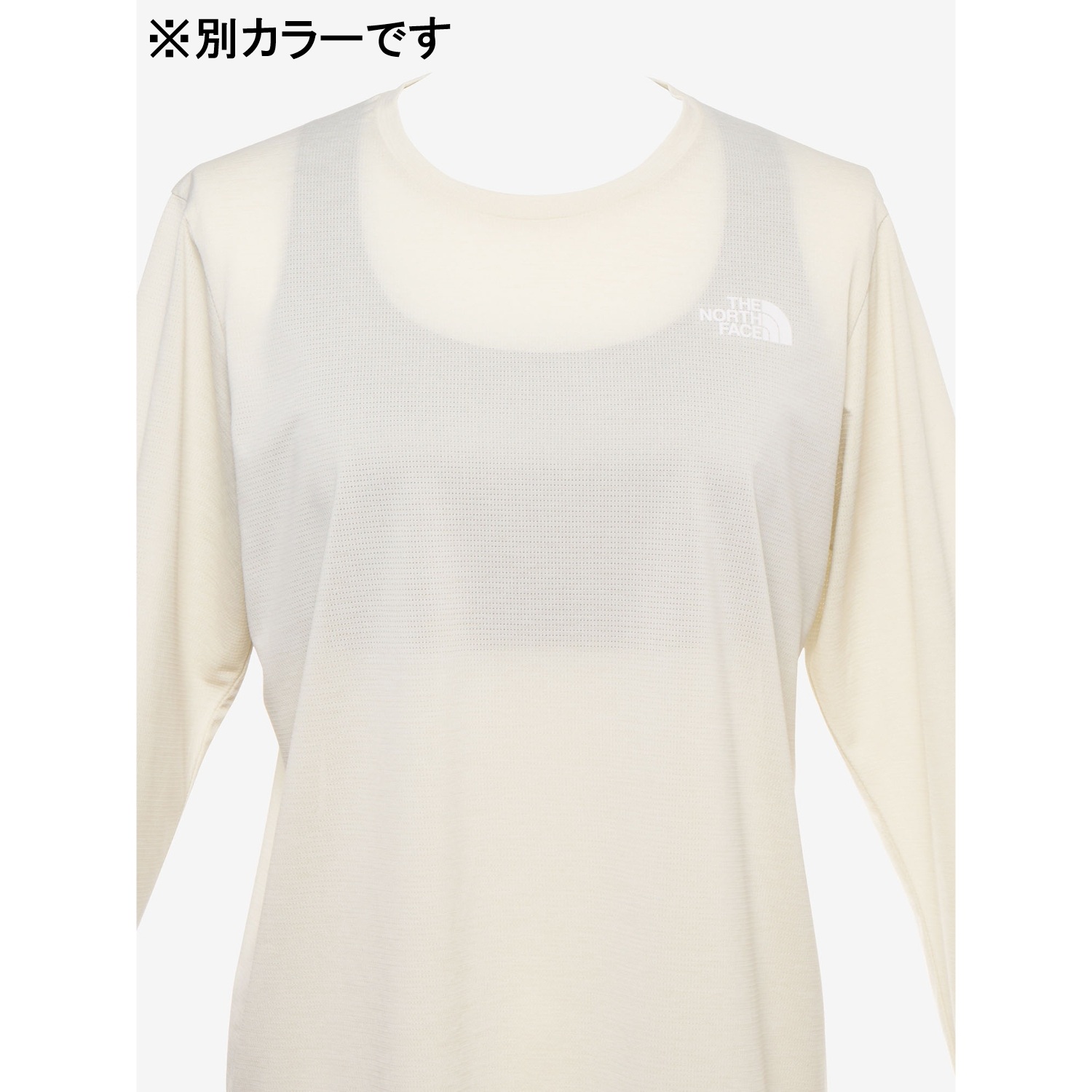 素材には、高い吸汗速乾性をもったTHE NORTH FACE独自の「FLASHDRY」を採用。肌面にはっ水糸を配置して、かいた汗を素早く表面に移行させ、肌面をドライに保ちます。肌面に若干の凹凸をもたせた立体的な編み地組織と相まって、肌へのまとわりつきも軽減。