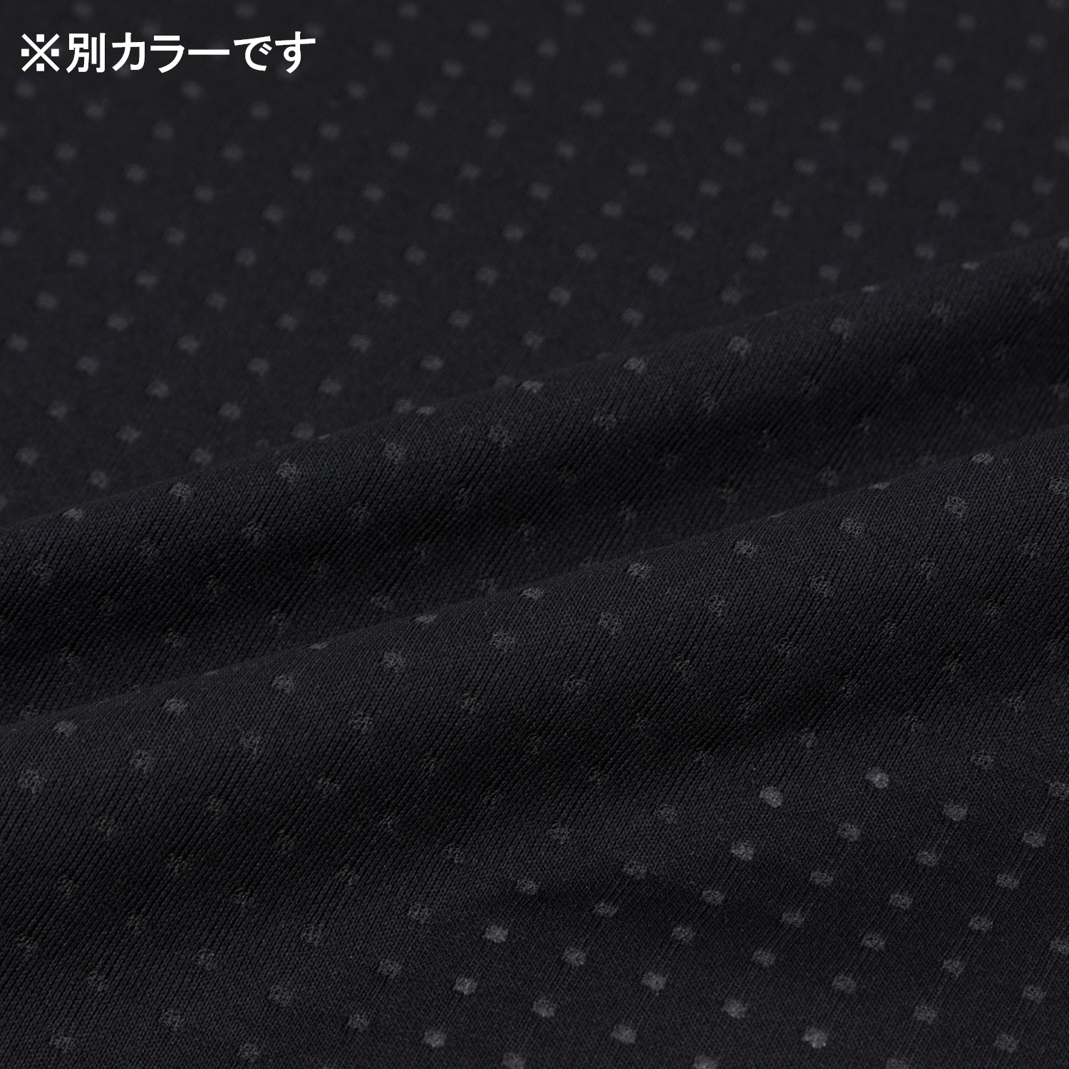 生地は、肌面にはっ水加工を施したドライ層を用い、表面は汗を素早く拡散し乾燥させる吸水層で構成したダブルニット構造。