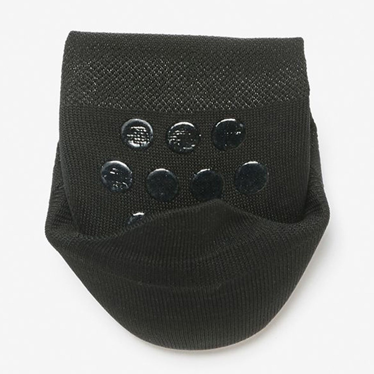 スリッパとソックスを融合したような立体的フォルムで、素足でもソックスを履いた状態でもゆとりを持って快適に履けます。