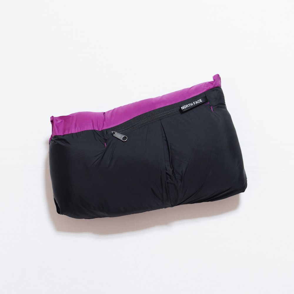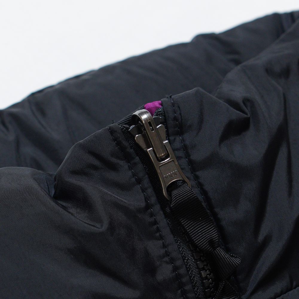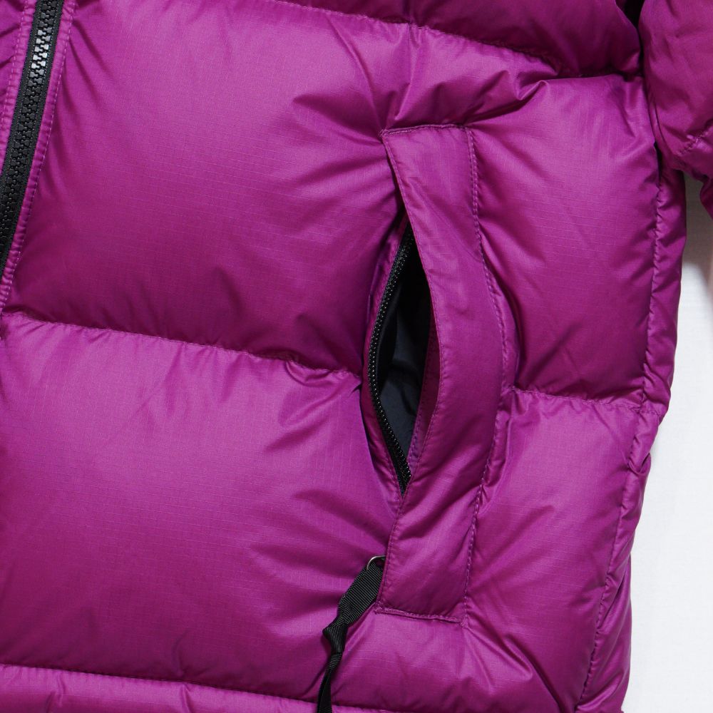 環境に配慮したリサイクルダウンを中わたの一部に使用。表地は強度がある40デニールのリップストップナイロンにはっ水加工を施し、パックに干渉する肩部分は厚手のナイロン素材に切り替えています。