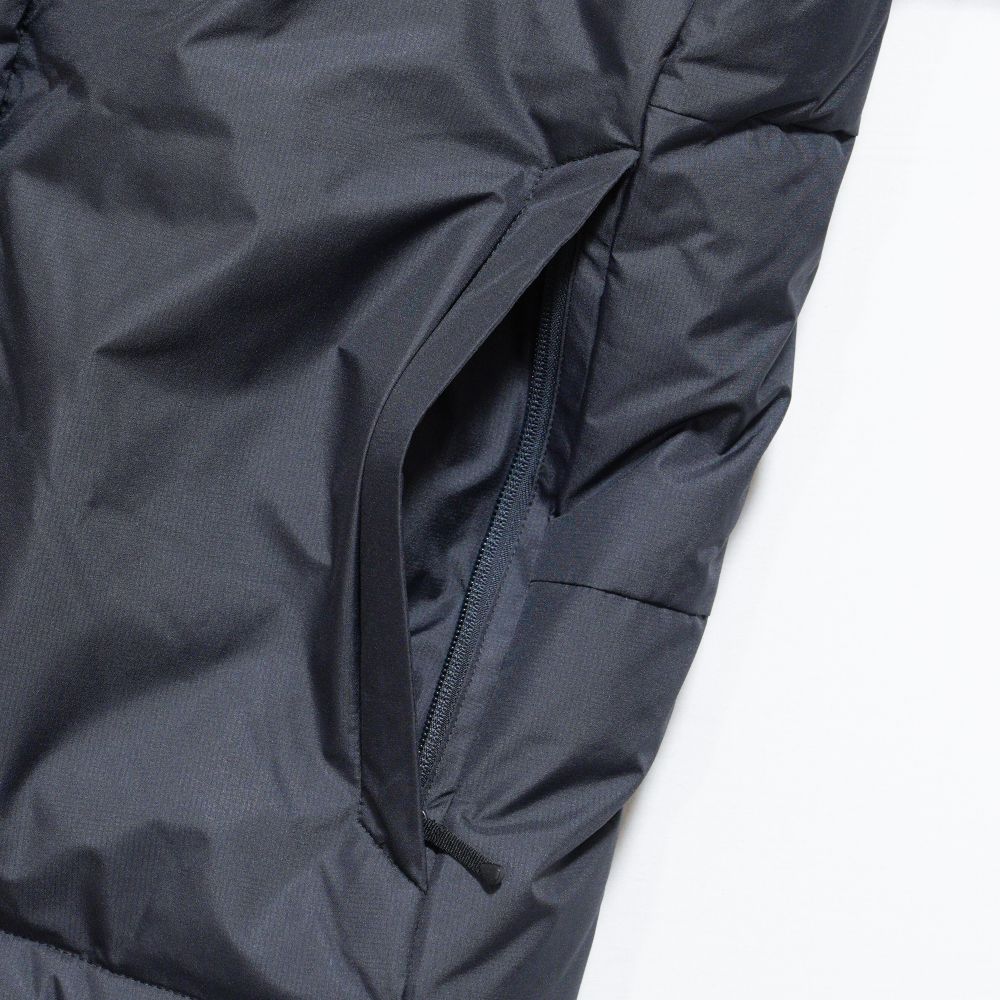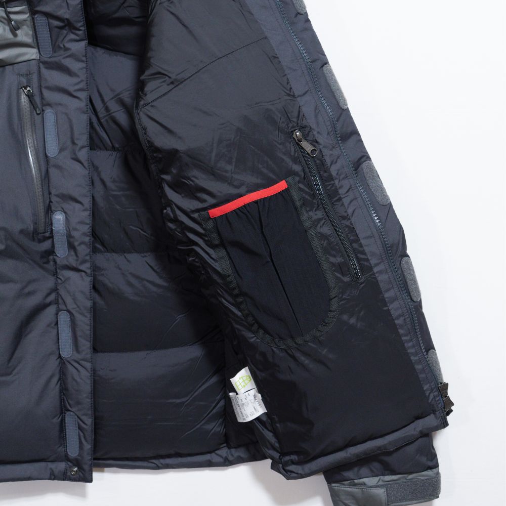 表地には非フッ素メンブレンによる30デニールのGORE-TEX WINDSTOPPER 2層構造を使用。防風性とともに耐水性もあり、多少の雨や雪に対応します。中わたには、特殊セラミックスの遠赤外線効果により優れた保温効果が持続する光電子ダウンを封入。高度な洗浄技術により、汚れを徹底的に除去したクリーンなダウンが高い保温性を確保します。中わた入りの内襟やフロントのダブルフラップなどでコールドスポットを軽減。携行に便利なスタッフサック付きです。