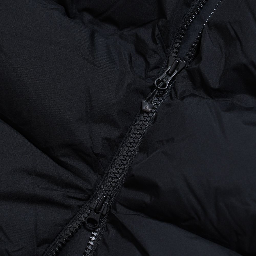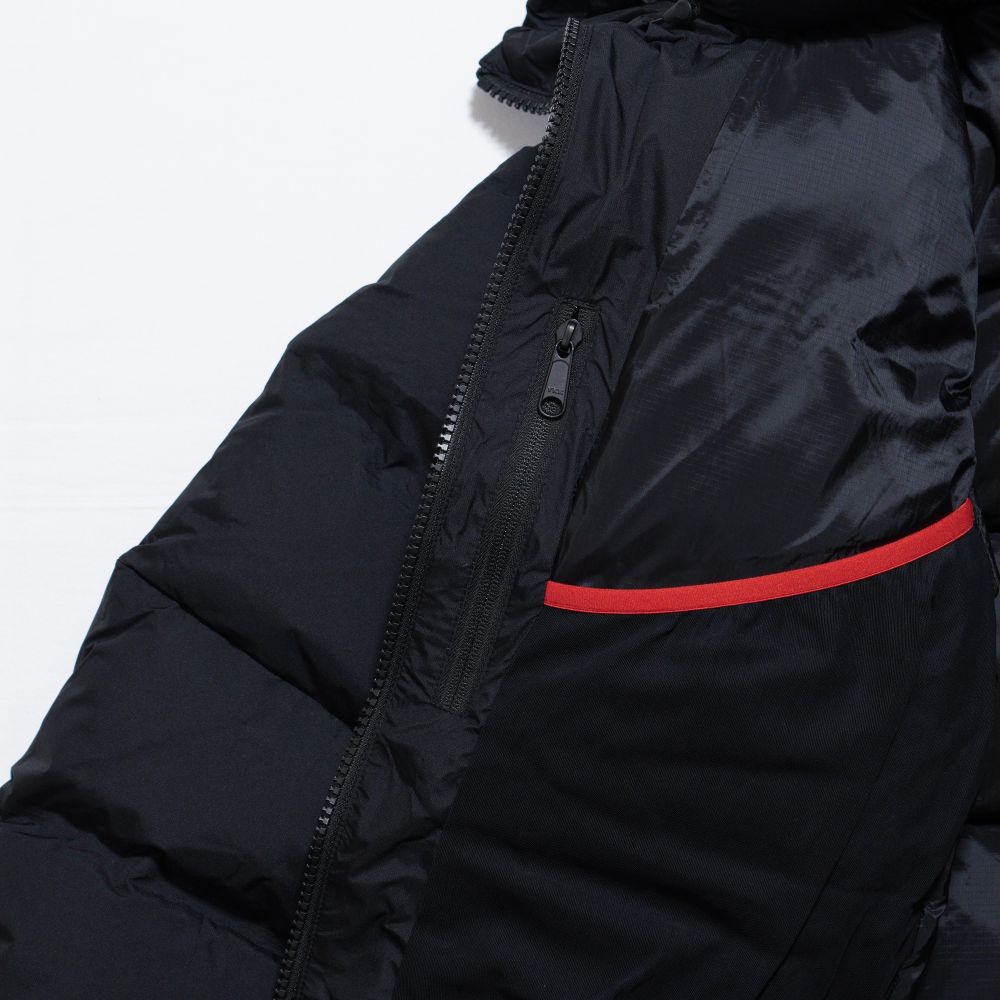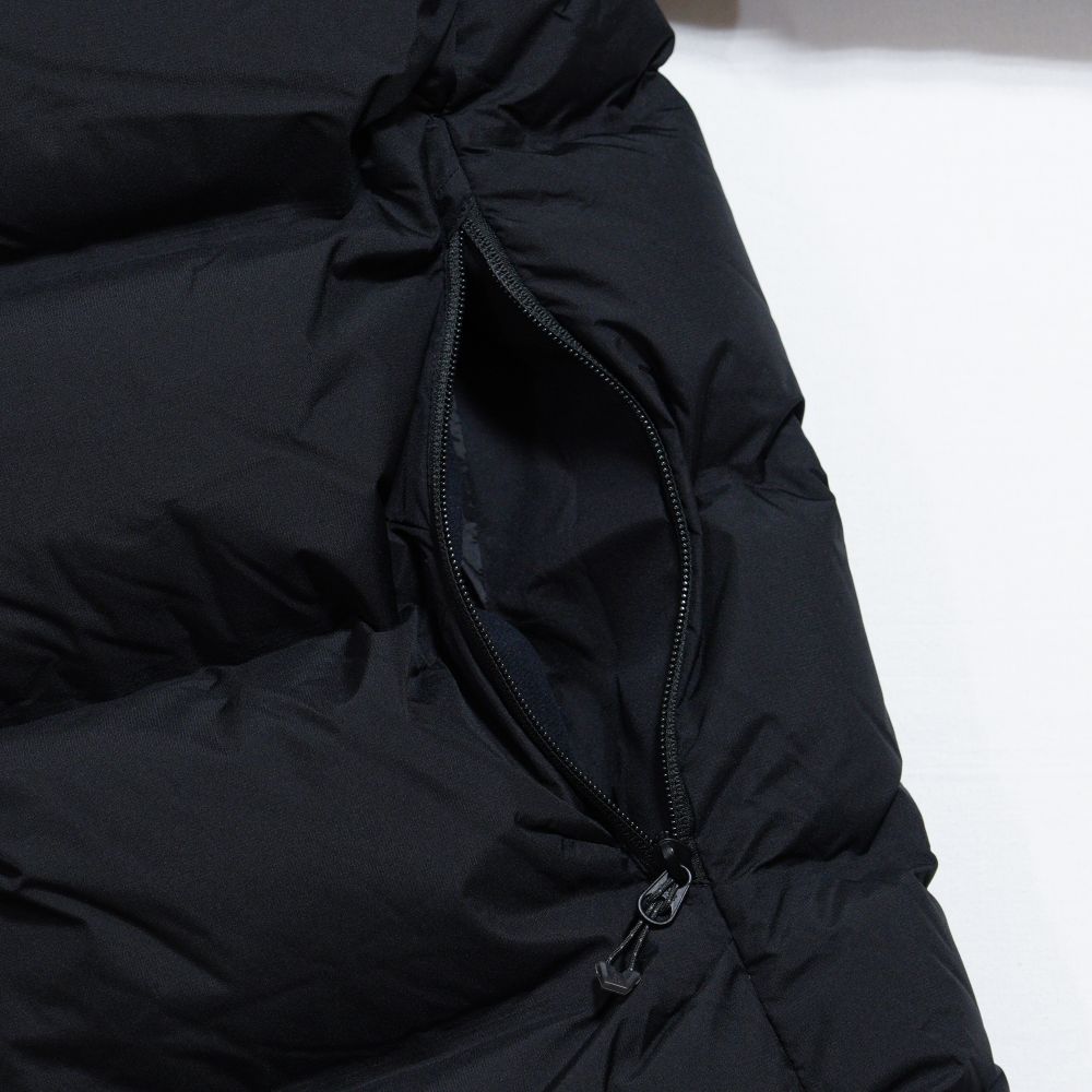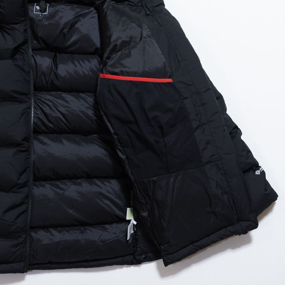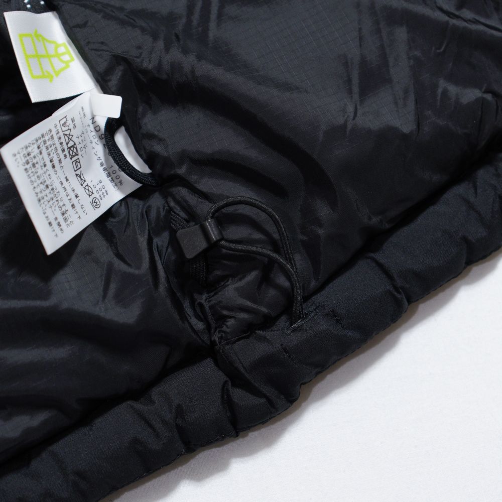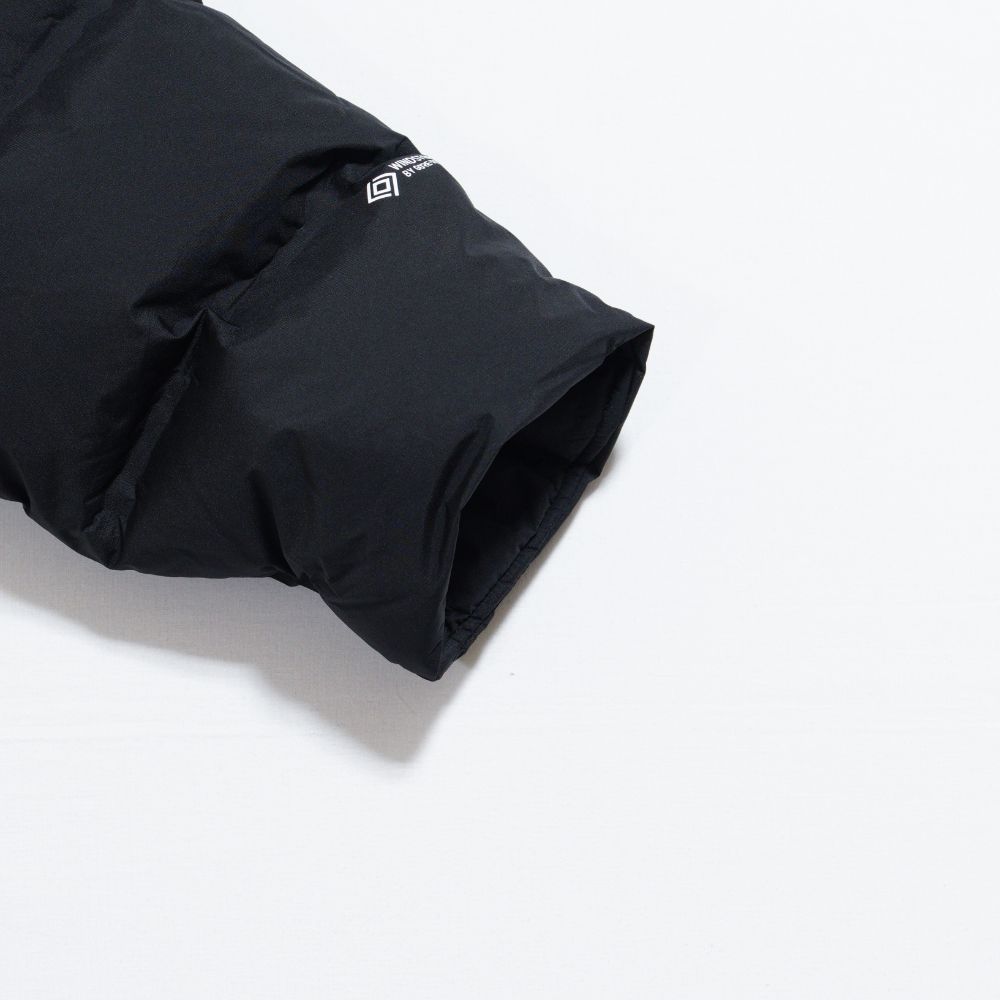 表地には防風性のあるGORE-TEX WINDSTOPPER 2層素材を採用しています。表地はバッフルの角にダーツを入れて立体感を出す構造。裏地には仕切り部分にタックを入れることでコールドスポットを軽減。中わたにははっ水加工を施したプロダウンを封入。内ポケットや大型メッシュポケットなどの収納スペースも豊富です。携行に便利なスタッフサック付き。