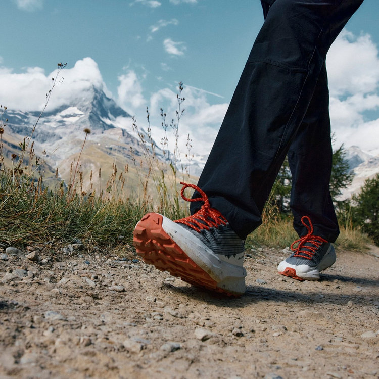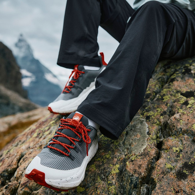 スイス政府観光局とマムートの長年にわたるパートナーシップの新たな一歩としてコラボレーション。スイスの伝統と自然美、そしてマムートの革新性を融合した特別なシューズ。