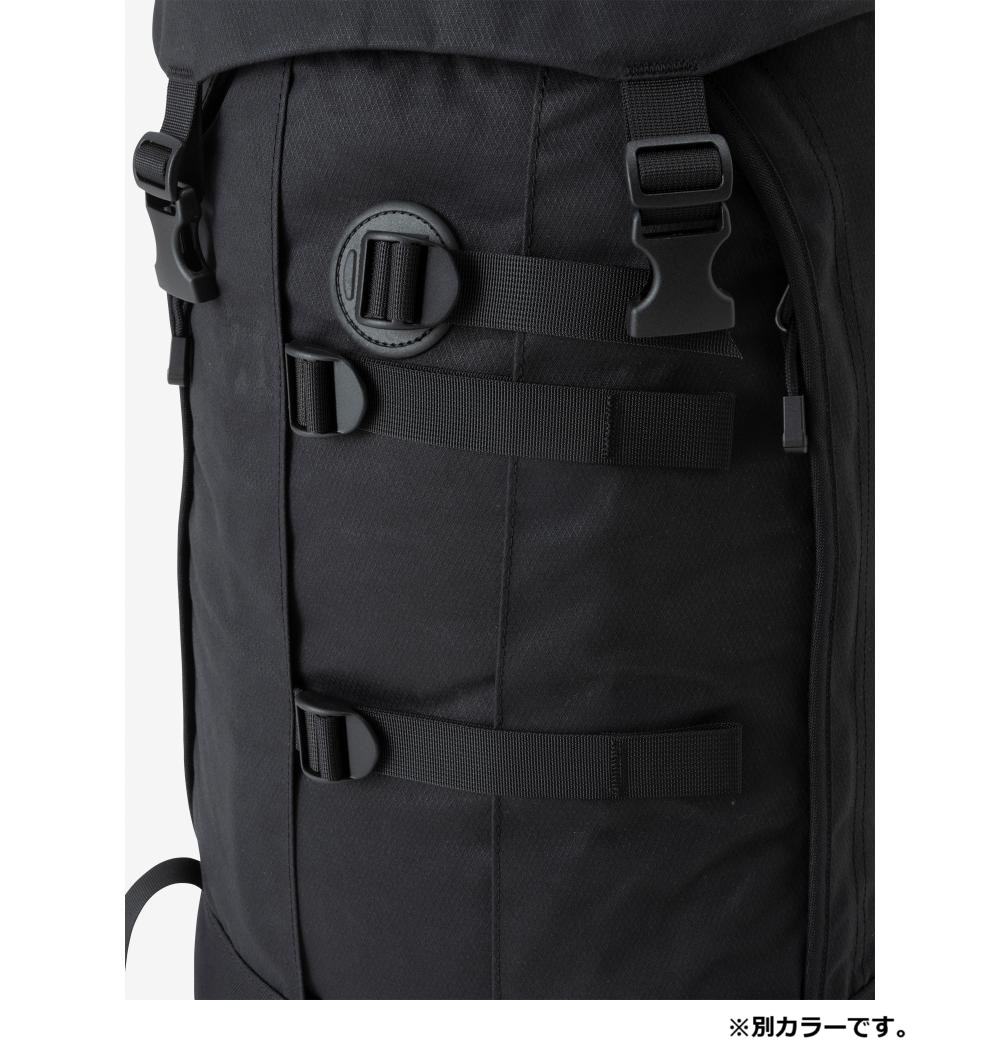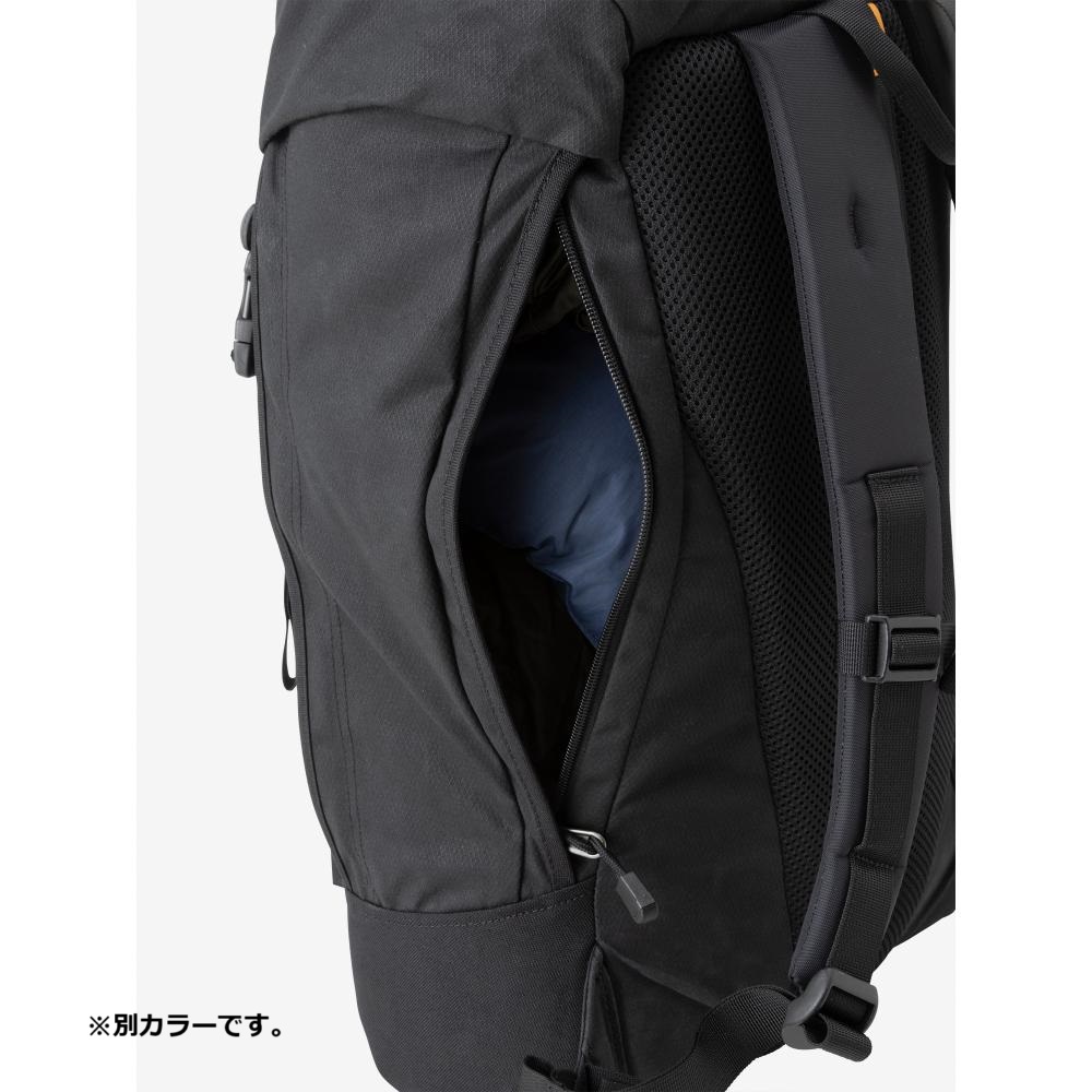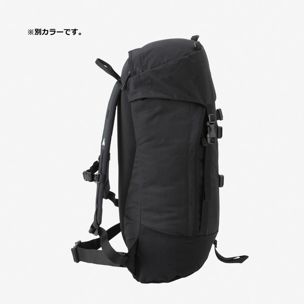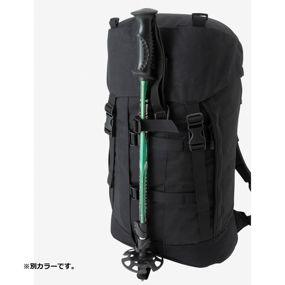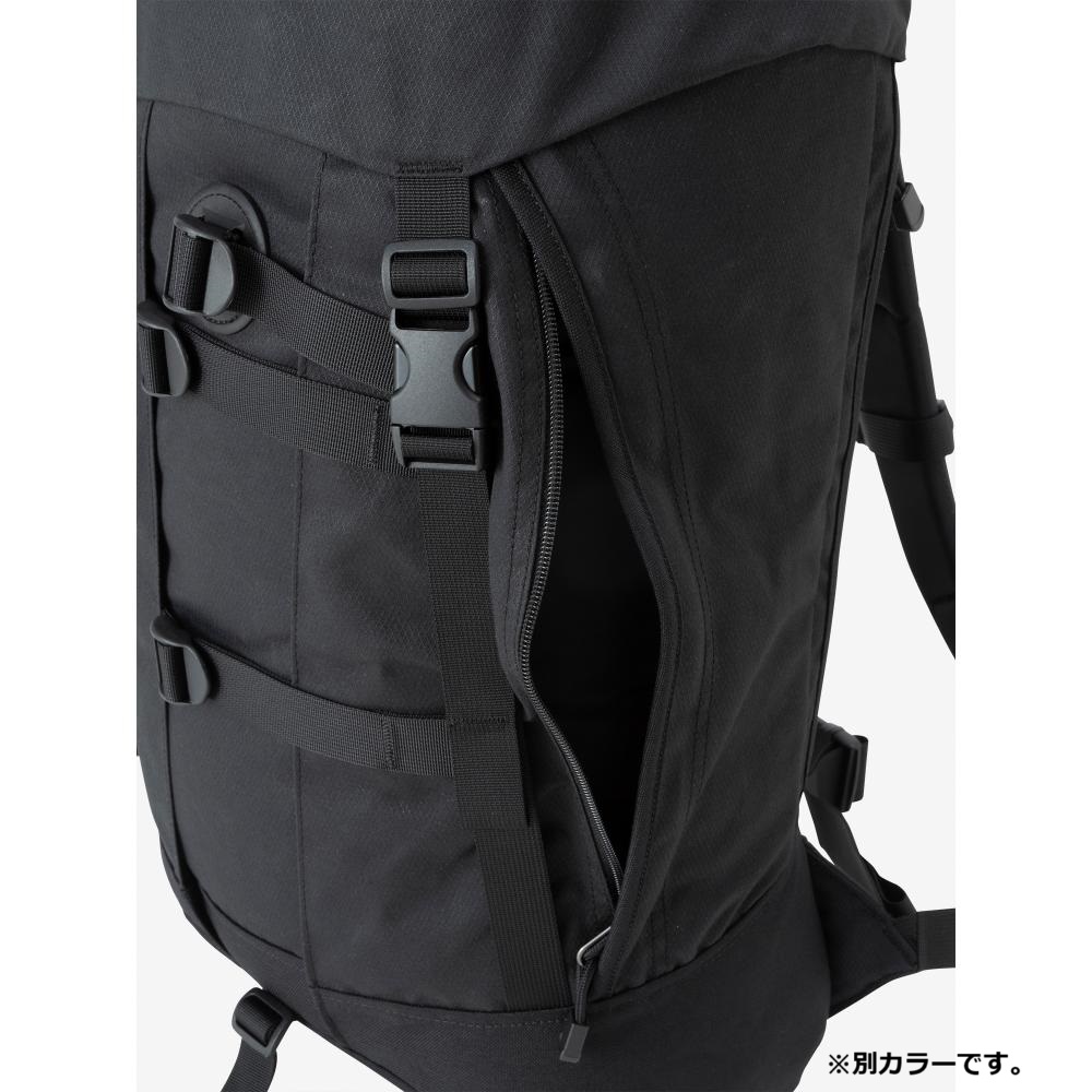 メインファブリックには、耐久性と耐水性に優れた「AzTec 8oz canvas」を使用。メインコンパートメントはシンプルな1気室で、操作性が高いトップローディング式を採用しています。大容量の雨蓋ポケットは利便性が高く、雨蓋を操作せずにメインコンパートメントへのアクセスを可能にする縦ジッパーを右サイドに配置しました。両サイドにはジッパーポケットを装備し、フロントにはポールなどを収納するストラップとポールループ付き。ウエストベルトは取り外しができます。