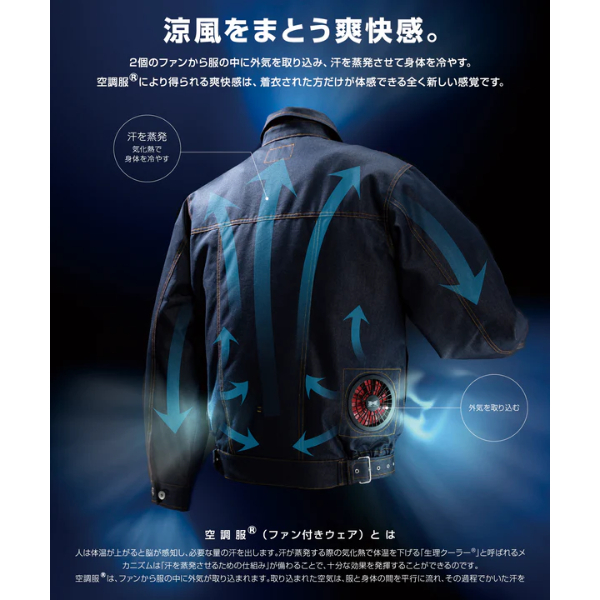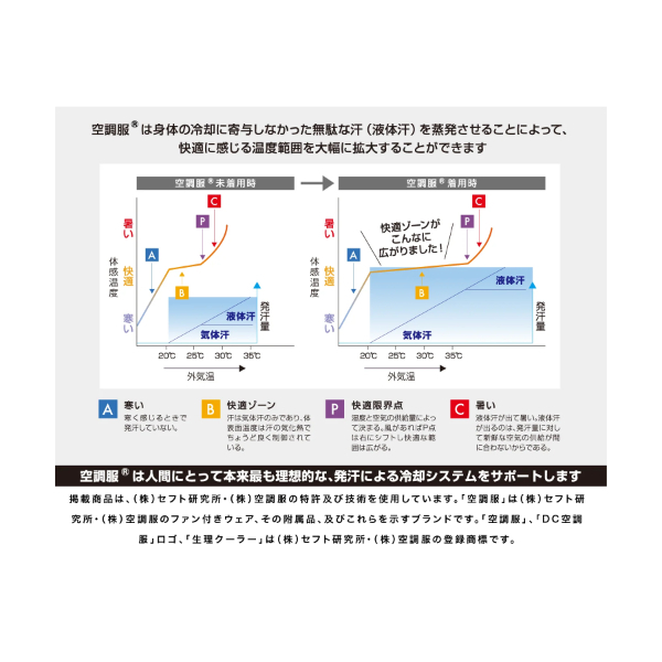 「空調服」、「DC空調服」ロゴ、「生理クーラー」は(株)セフト研究所・(株)空調服の登録商標です。