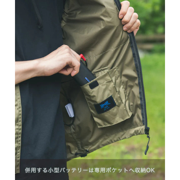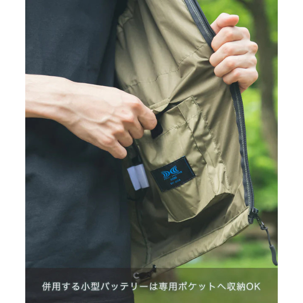 背中のファンから送る風で汗を気化し体を冷やすので、夏フェスやキャンプなど、炎天下でのアウトドアシーンをより快適に楽しむことが可能です。