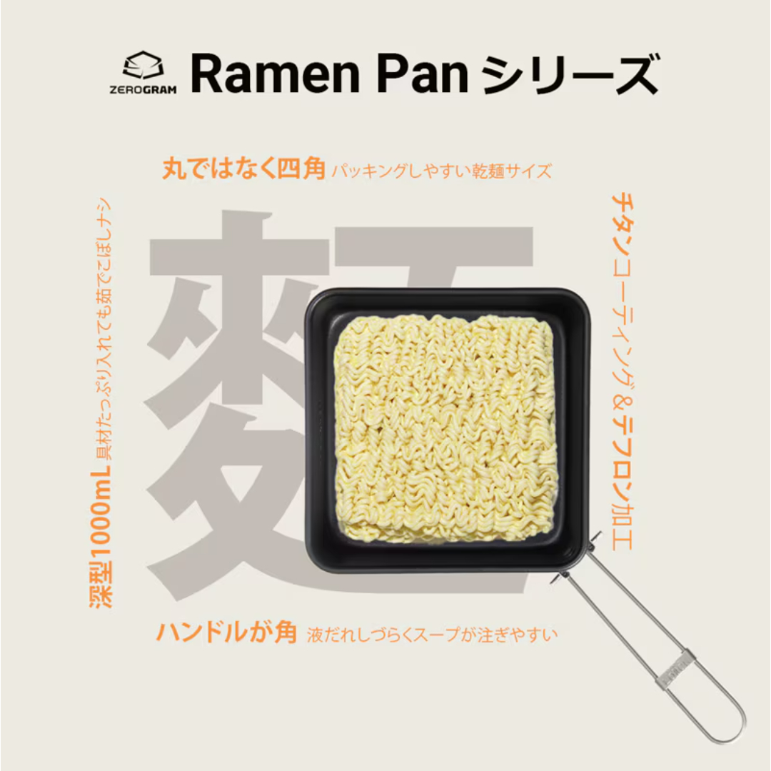 ・Ramen Pan側面のZEROGRAMロゴは500ml(ラーメン一人当たりを作るのに適した水の量)の目安です。水量線もついています。