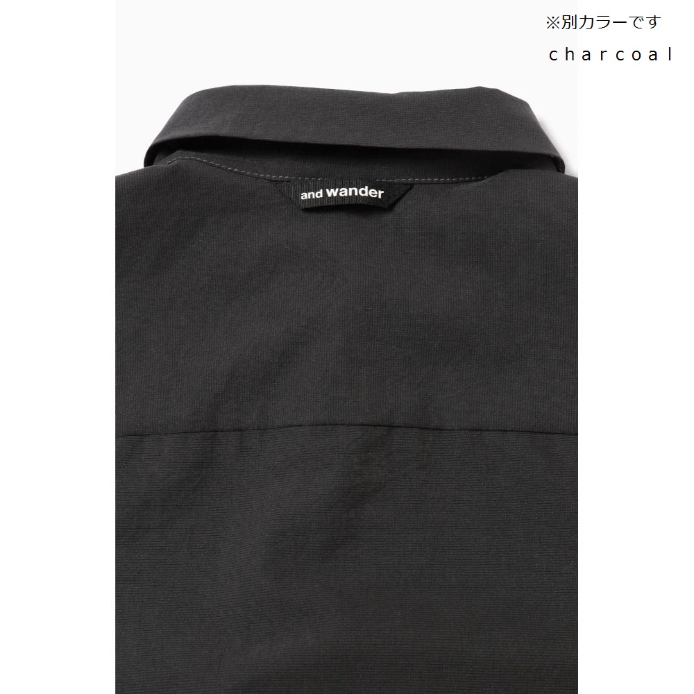 - 非常に細かい通気孔の組織をした、撥水、ストレッチ素材のシャツは、行動時の蒸れを防ぎます。
