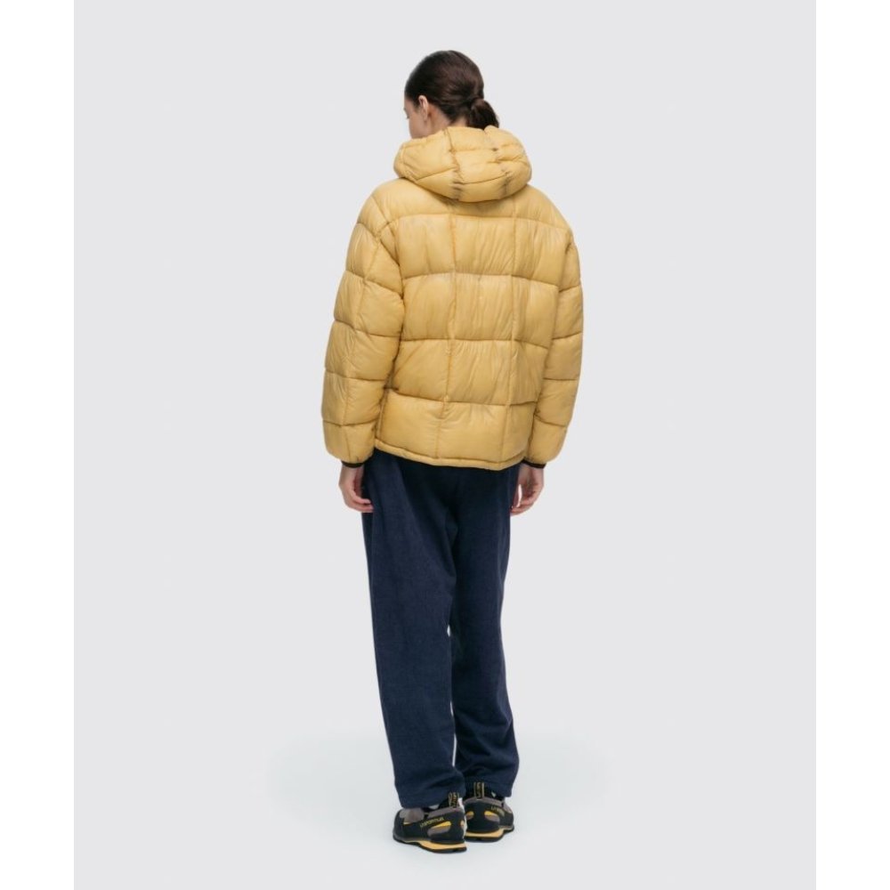 - オーセンティックなアウトドアダウンジャケットのデザイン。 クラシックな格子の大きさや随所のデザインを採用しつつ、仕様は現代風にアップデート。 内衿は首周りの保温性を考慮し、起毛素材を配色。 高密度軽量ダウン素材のSHINING NYLONと中綿にはLOFTECHを採用。 フードのフィッティングやドローコードの配置等こだわり緻密に設計。 ポケッタブル可能な収納袋つき。