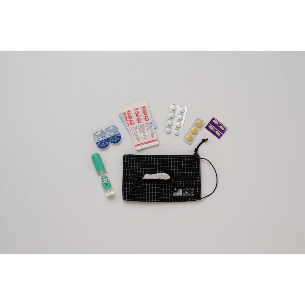 3種類のポケットを配しています。正面ポ ケットは両開きのため、ポケットティッシュ ケースとしても便利。持ち手ループつきなので、バックパックやサコッシュから取り 出しやすく、洗面所やトイレへの持ち運びも容易です。