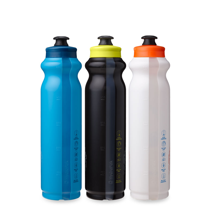 コアなランナーは内容物によって複数のフラスクを持つようです。中身を見分けるためにマジックペンでフラスクに用途名を書いたりしますが、テンポボトルは色で認識できるように3色セットでご用意いたしました。