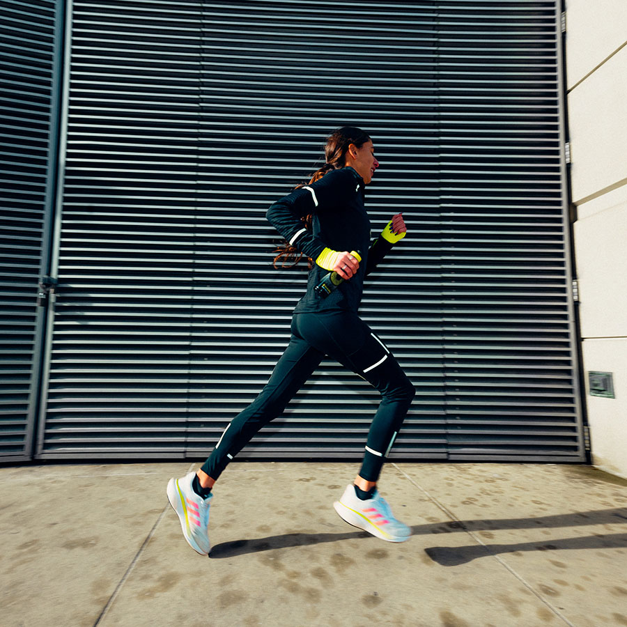 スリムな形状と独自のグリップ溝により、持ちやすく、簡単に絞ることができます。ランニングベストにも収まります。