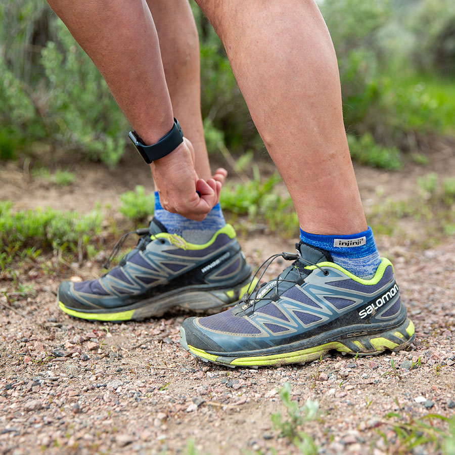トレイルシリーズは未舗装の悪路や岩場での使用を考慮して設計されました。ダブルカフ(2重折りの履き口)は足首にぴったりフィットし、さらにメッシュトップロック(綿密に織ったメッシュパネル)により、ソックス内へ砂埃や砂利などの侵入をブロックします。クールマックスを採用しており、足とつま先の湿気を効果的に放出し、足を常にドライに快適に保ちます。足裏をパイル編みにすることでクッション性を備えています。トレイルランニングやアドベンチャーレースなどにおすすめのソックスです。