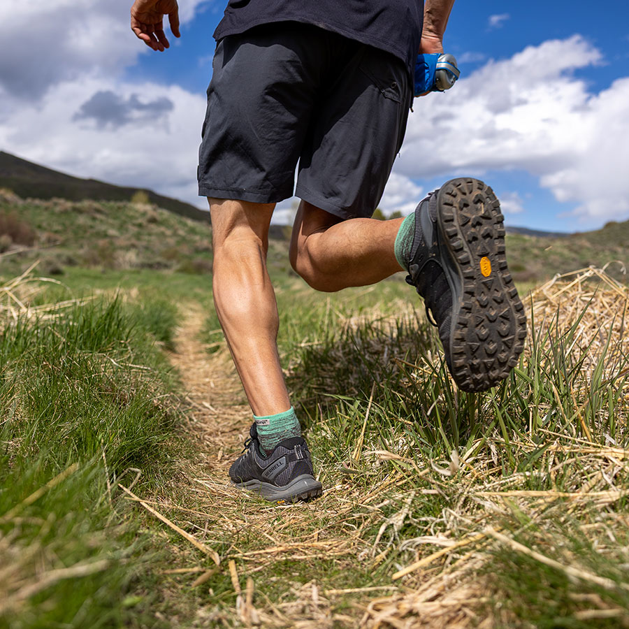トレイルシリーズは未舗装の悪路や岩場での使用を考慮して設計されました。ダブルカフ(2重折りの履き口)は足首にぴったりフィットし、さらにメッシュトップロック(綿密に織ったメッシュパネル)により、ソックス内へ砂埃や砂利などの侵入をブロックします。クールマックスを採用しており、足とつま先の湿気を効果的に放出し、足を常にドライに快適に保ちます。足裏をパイル編みにすることでクッション性を備えています。トレイルランニングやアドベンチャーレースなどにおすすめのソックスです。