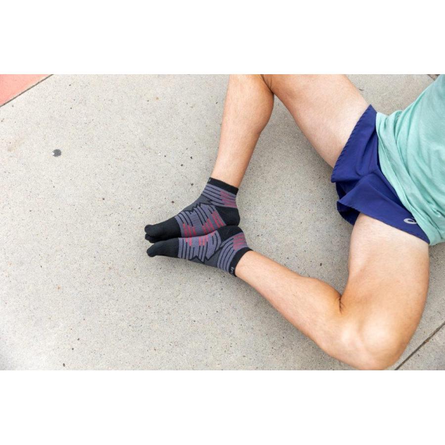 ランシリーズの「アーチサポート」「メッシュトップパネル」に加え、さらに独自の縫製技術で指の先にまでパイル編みを施すことでクッション性を進化させました。