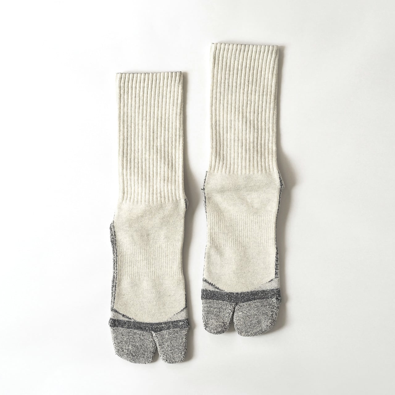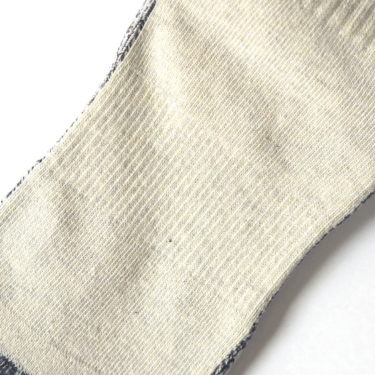 スポーツやアウトドアのシーンでもしっかり着用できるように、足底と履き口にグリップ機能を兼ね備えた特殊素材を入れ、靴やサンダルでの滑りやズレを少なくし、グリップ力を向上させました。甲にサポートゴムを入れることでより、足にフィットしやすい設計です。