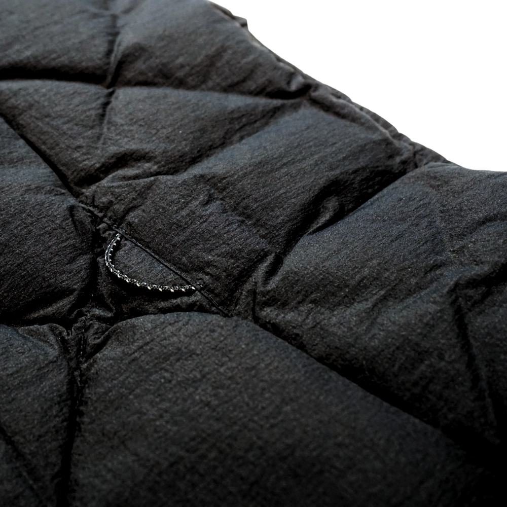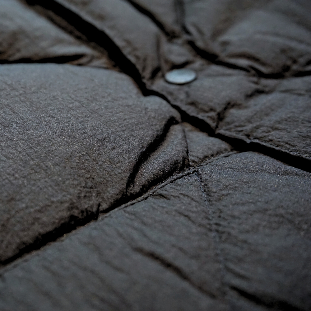 目付けわずか46g/m2と、超軽量で撥水性のあるナイロンを使用。"Crinkle dye"という特殊な方法で染色している為、表面に凹凸感のある表情が生まれます。700フィルパワーのポーランド産の羽毛を使用し、保温性も抜群です。
