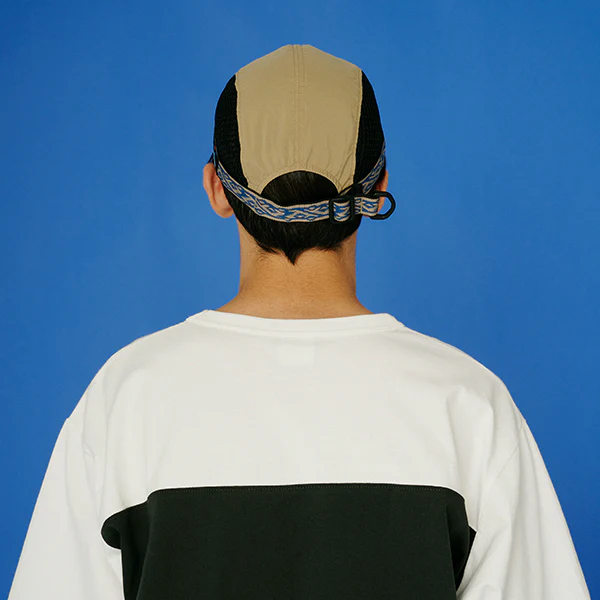 縁に付いたアジャスタブルウェビングテープによりサイズ調節ができます。このウェイビングシステムにより、強風でも脱げにくくなっています。ナイロン製でサイドのメッシュパネルが頭部の熱を冷まします。このキャップを選んだ日は、いつもの毎日のようで少し違う少し遊び心のある1日になるかもしれません!