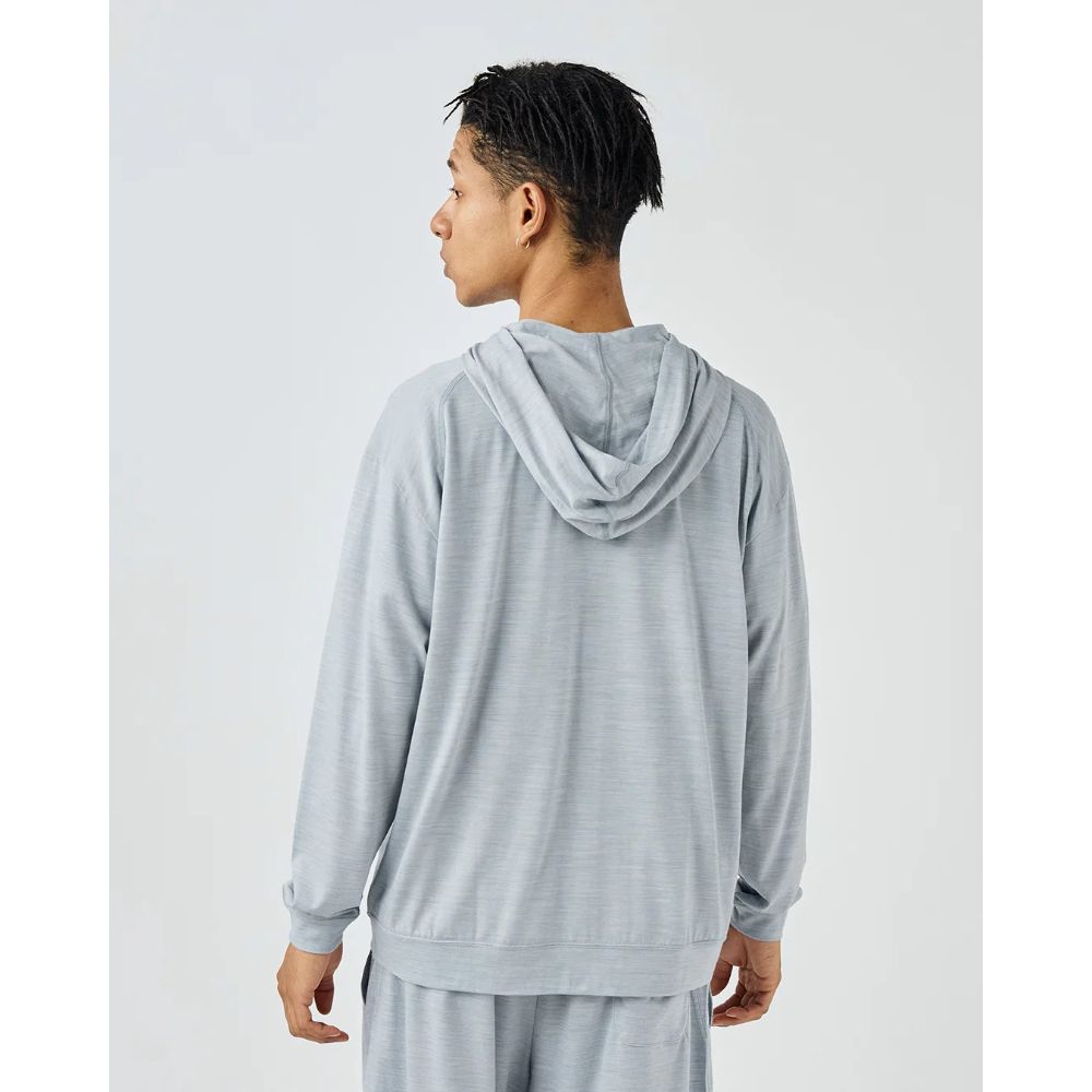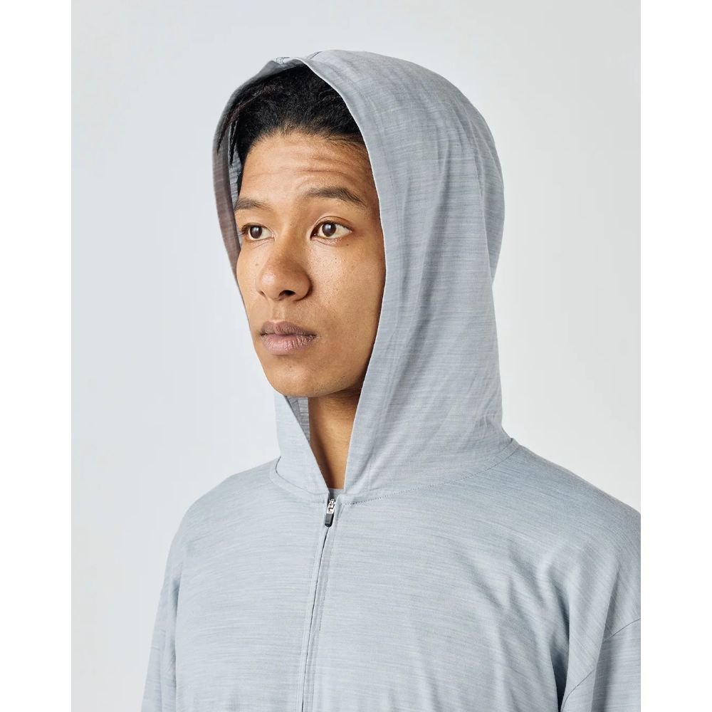 - [sn]定番素材のメリノーウール50%・ポリエステル50%の混紡生地を使用したジップアップフーディー。