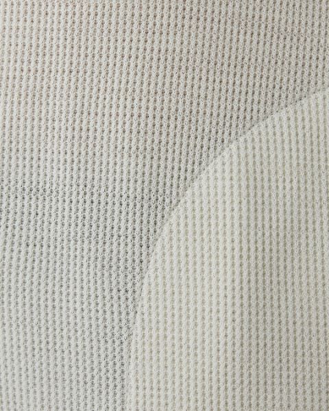 収縮性に富み凹凸のある編み地の為、肌に密着しすぎるのを防ぎ、生地と肌の間に空気の層を作り出すことで保温性を高めると同時に、さらっとした感触で快適な着心地を実現。
