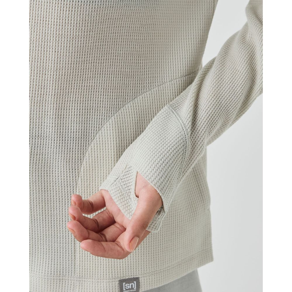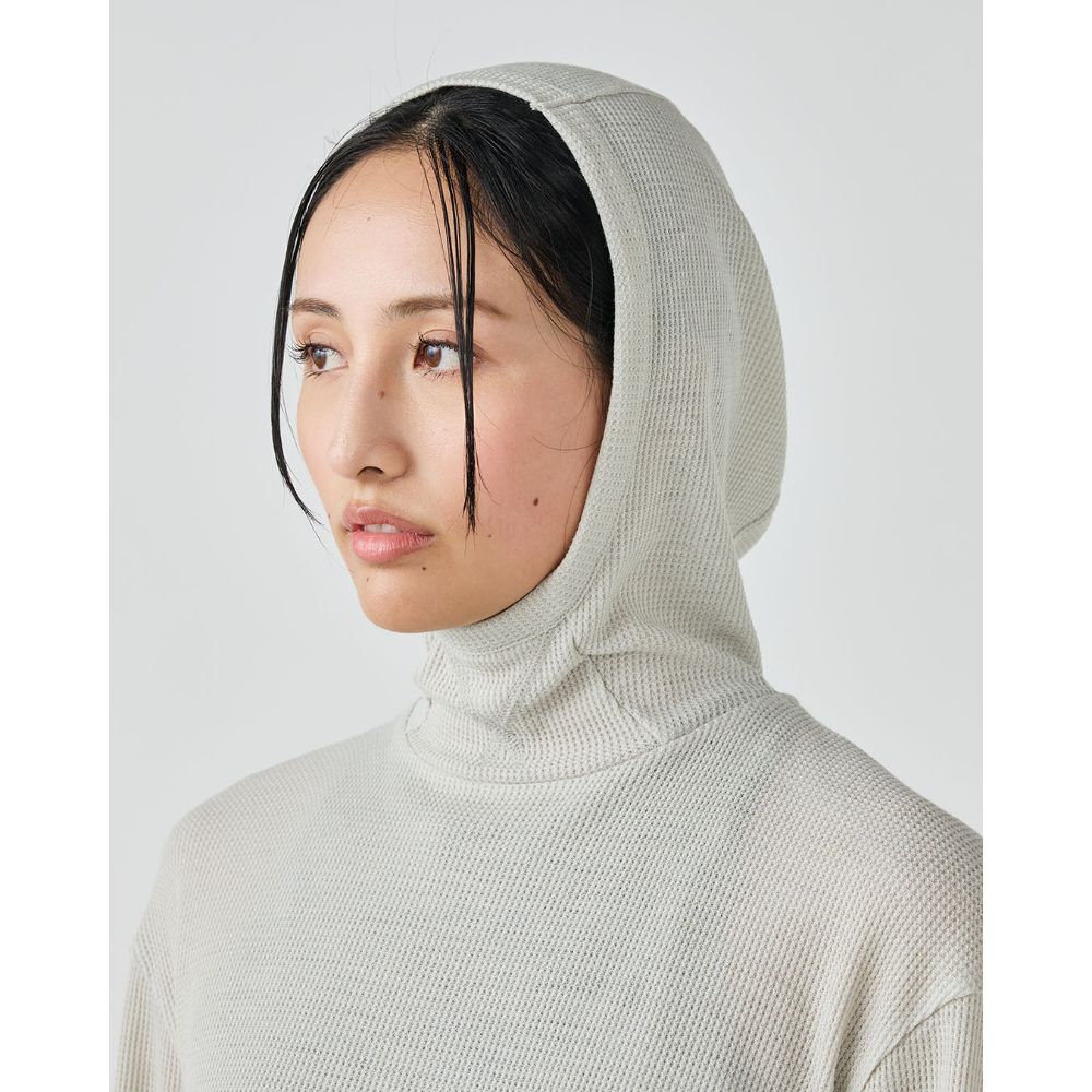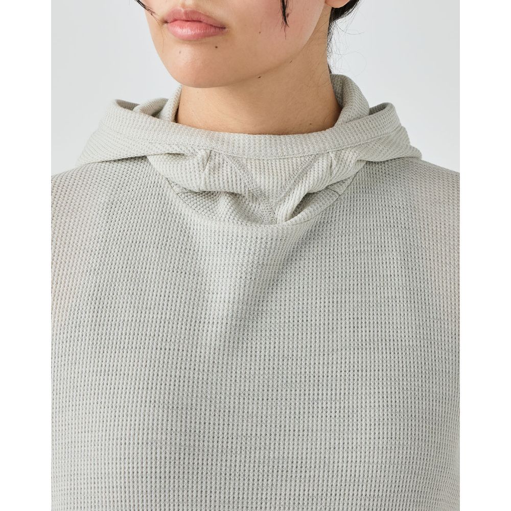 - メリノウール53%・ポリエステル47%の混紡糸で編みたて、ふっくらとした肌触りが特徴のワッフル生地を使用したフーディー