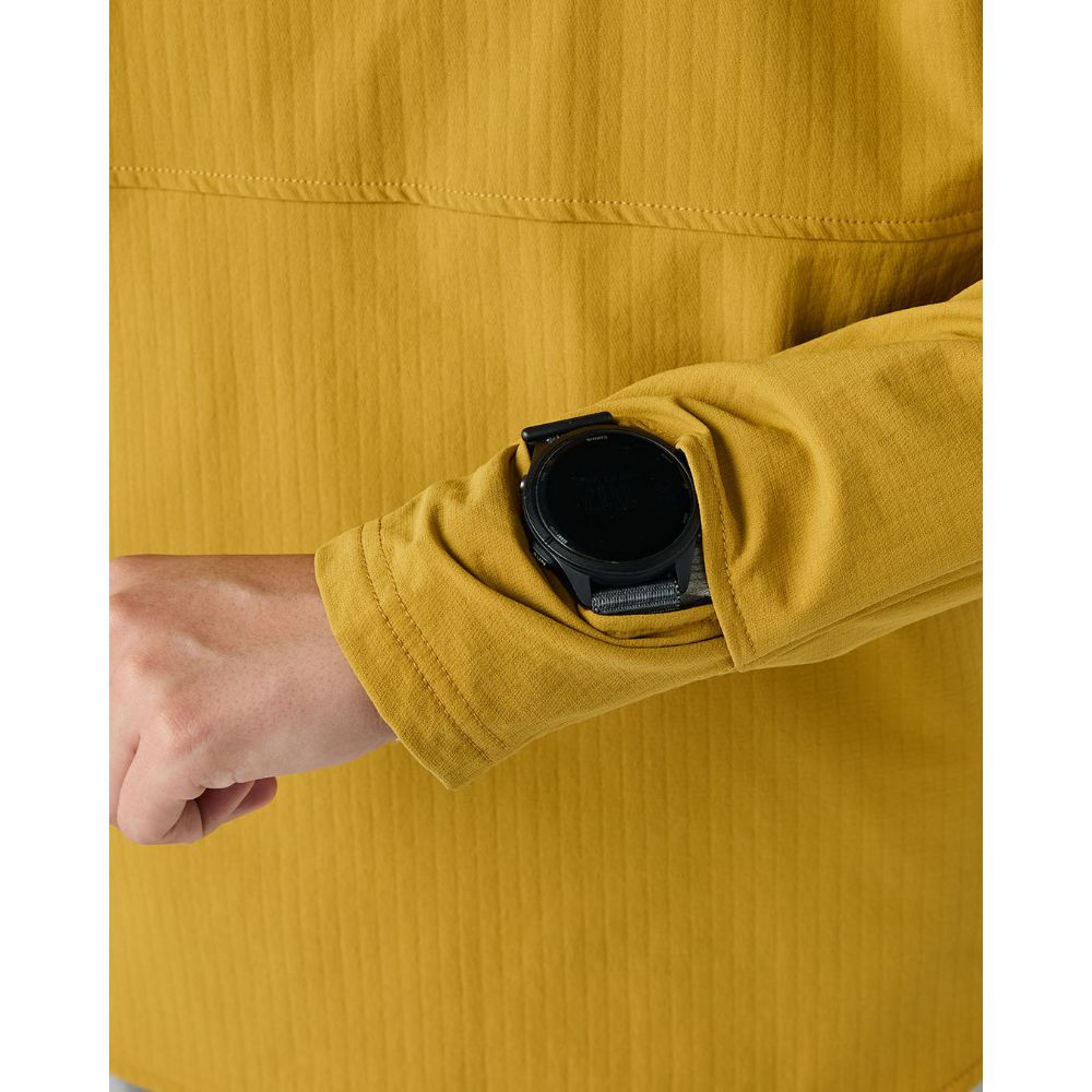 - 4方向への優れたストレッチ性と撥水性(※)、防風性、透湿性、坊シワ性を持ち合わせた2重織多機能素材〝ストームフリース″を使用。