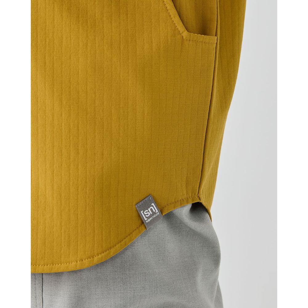 ゆったりとしたシルエットで、Tシャツの上に一枚で羽織るのはもちろん、ボタンを閉めてシャツのように着ることも可能です。