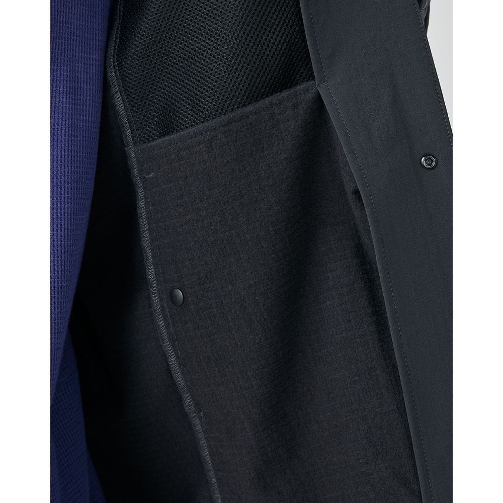 脇の下には、行動中にこもりがちな熱や湿気を逃がすベンチレーションを装備。