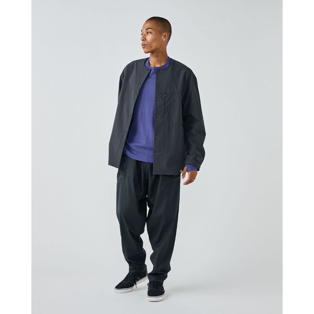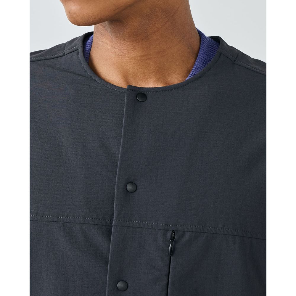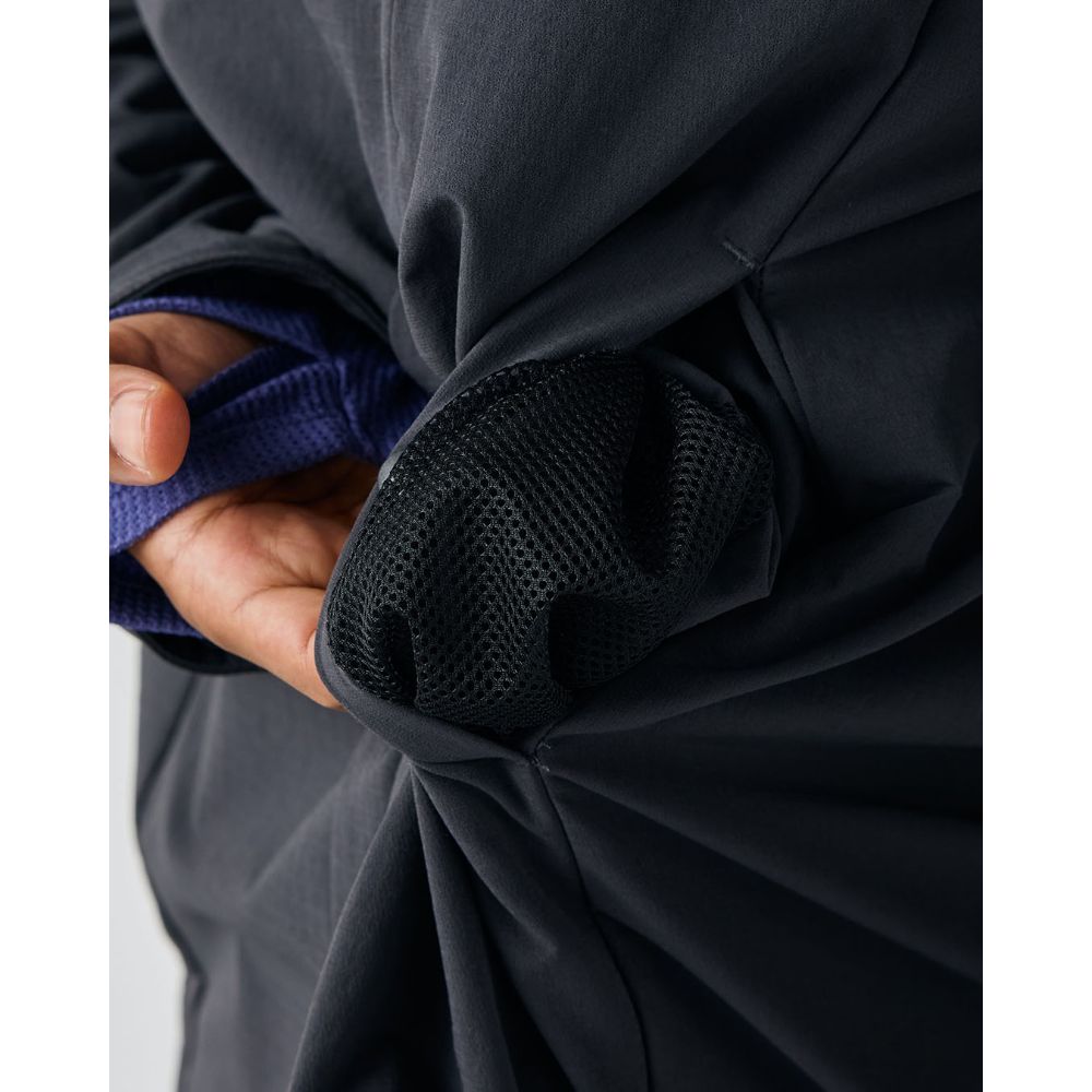 - 4方向への優れたストレッチ性と撥水性(※)、防風性、透湿性、坊シワ性を持ち合わせた2重織多機能素材〝ストームフリース″を使用。