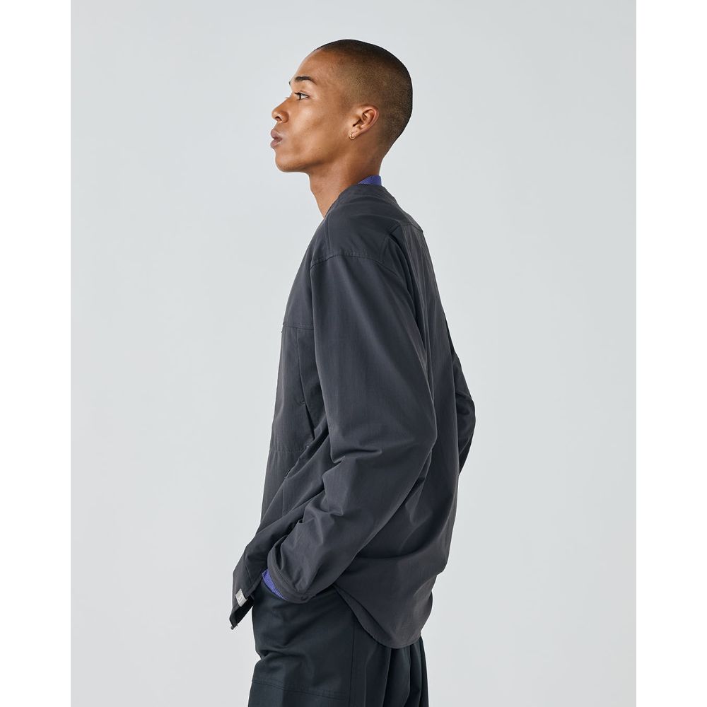 ゆったりとしたシルエットで、Tシャツの上に一枚で羽織るのはもちろん、ボタンを閉めてシャツのように着ることも可能です。