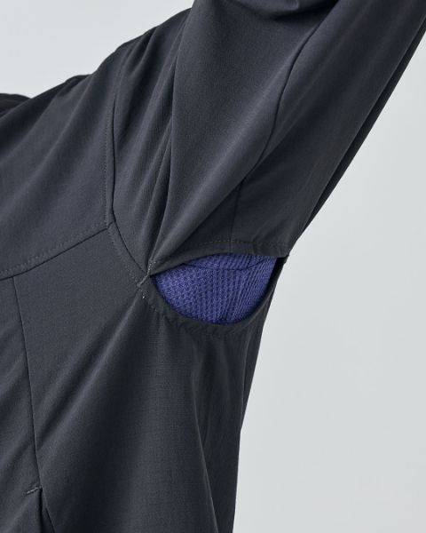 脇の下には、行動中にこもりがちな熱や湿気を逃がすベンチレーションを装備。