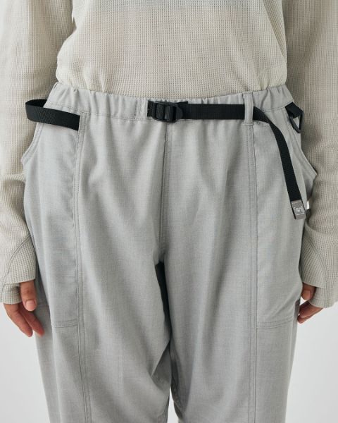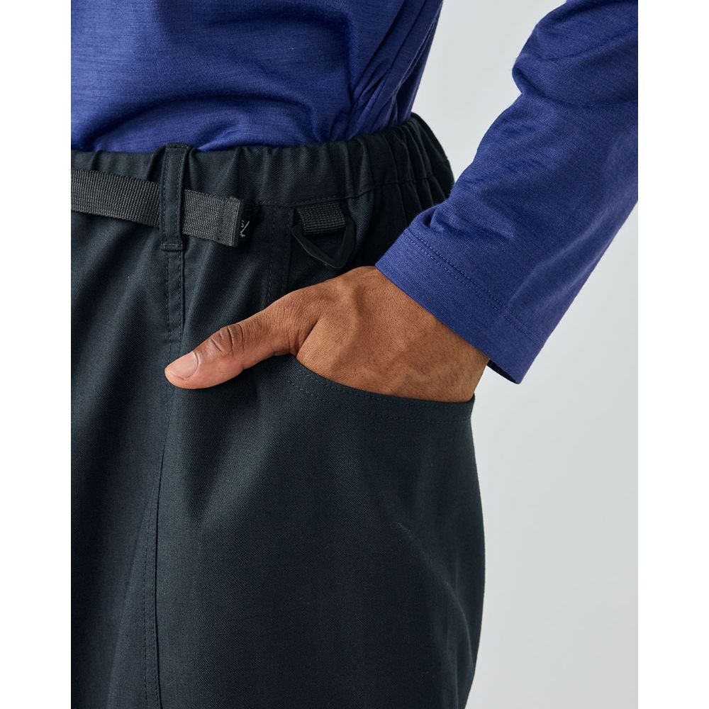 大胆な太さを持つこのパンツは、裾が絞られたデザイン(テーパード)になっているため、ハイキングやクライミングといったアクティブなシーンでも足元の動きを妨げません。