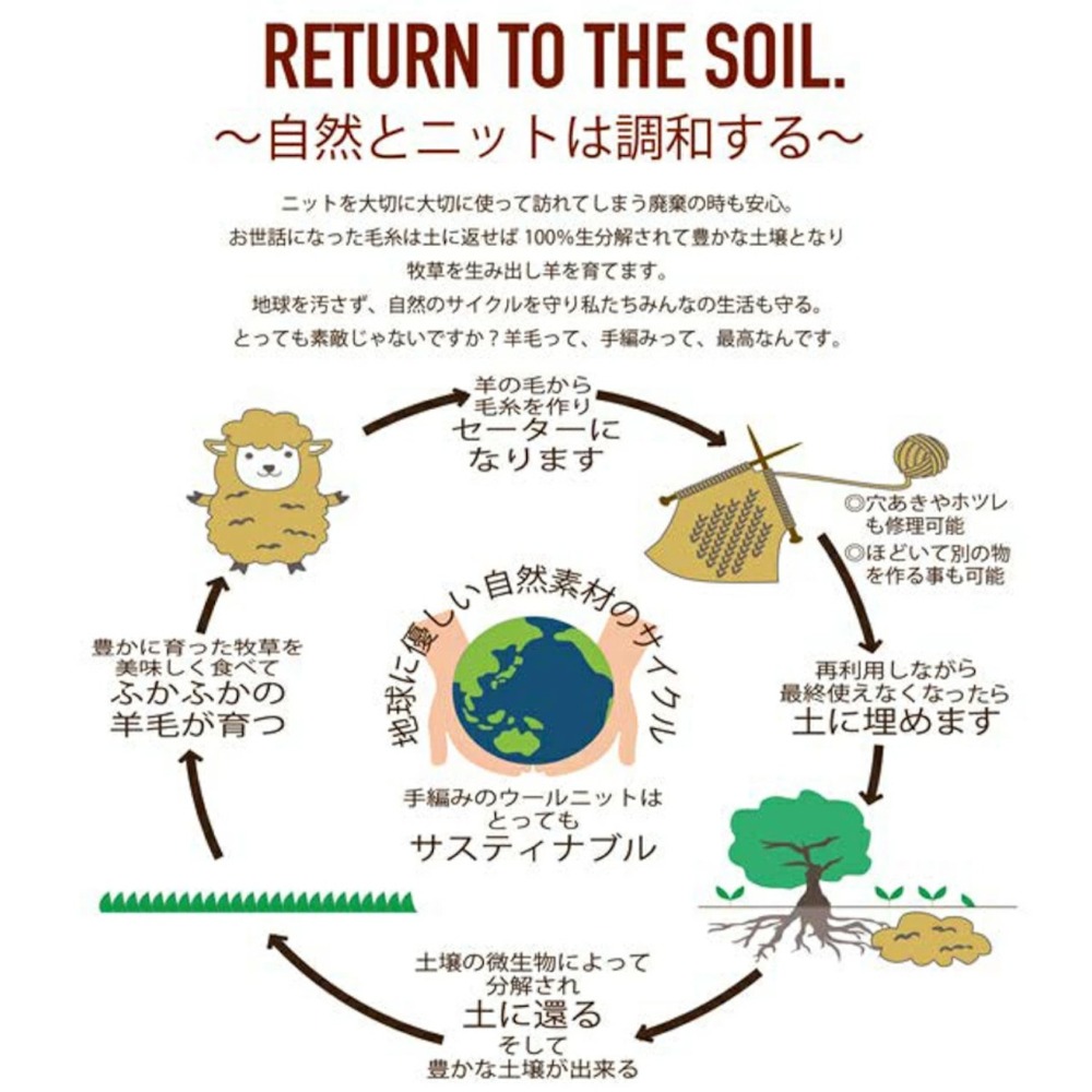 ウ-ル本来の着心地の良さと保温性の高さ、防臭効果に加え表面は水分を弾く機能性に優れています。原毛は上質なニュ-ジ-ランドから輸入し、ヒマラヤ(ネパ-ル)で紡績・染色しています。職人がしっかりとテンションをかけて手で編んでいるので、着用時に伸びたり縮んだりの不安はありません。