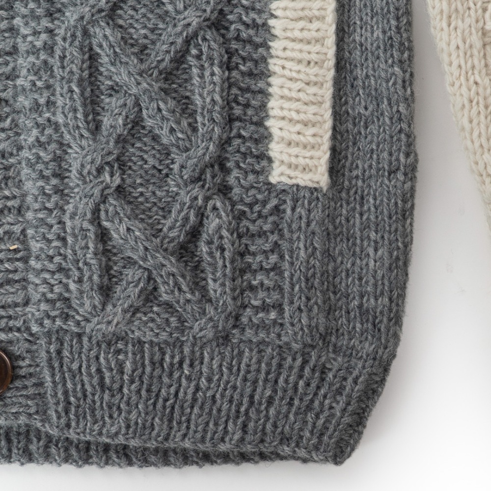 - このスタジアムジャンパ-(スタジャン)風のカ-ディガンは、熟練した職人たちが手編みの技術を駆使して作られています。衿の配色ラインや袖の切替配色が絶妙なバランスで仕上がっています。フロントのボタンは水牛の角から削り出した天然の素材を採用しているので、落ち着きがあります。